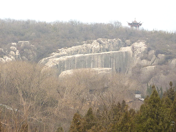 Gut, wir wollen einräumen, dass wir es hier mit einem der ältesten "Steinbrüche" der Welt zu tun haben. Er wird zumindest seit Jahrhunderten als Kalkstein-Materialquelle für Gebäude und Denkmäler in Nanjing genutzt. Das war's aber dann auch schon mit der Normalität. Fassen wir einmal zusammen. Entsprechend dem üblichen Entwurf einer chinesischen Gedenkstele wurden seinerzeit drei Einzelteile aus einem Felsen in Yangshan geschnitten, die bis heute noch dort zu finden sind: der rechteckige Sockel, der Stelenkörper und der Stelenkopf (eine Krone, die mit einem Drachenmotiv verziert werden sollte – jedoch heute nur schwer mit einer solchen Zielsetzung bildlich zu assoziieren ist). Nachdem die meisten "Steinmetzarbeiten" erledigt waren, erkannten die Architekten, dass es physikalisch nicht möglich sein würde, die Steine von Yangshan nach Ming Xiaoling zu bringen, geschweige denn sie dort richtig aufeinander- bzw. zusammenzusetzen. Soso … hatten die Logistikspezialisten von damals einfach nur ein paar Stellen vor dem Komma übersehen?
