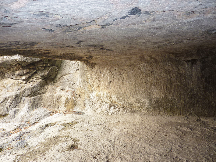 Abb.: Einst glatte Wände / Es ist kaum anzunehmen, dass hier seinerzeit mit Hammer und Meissel operiert wurde.