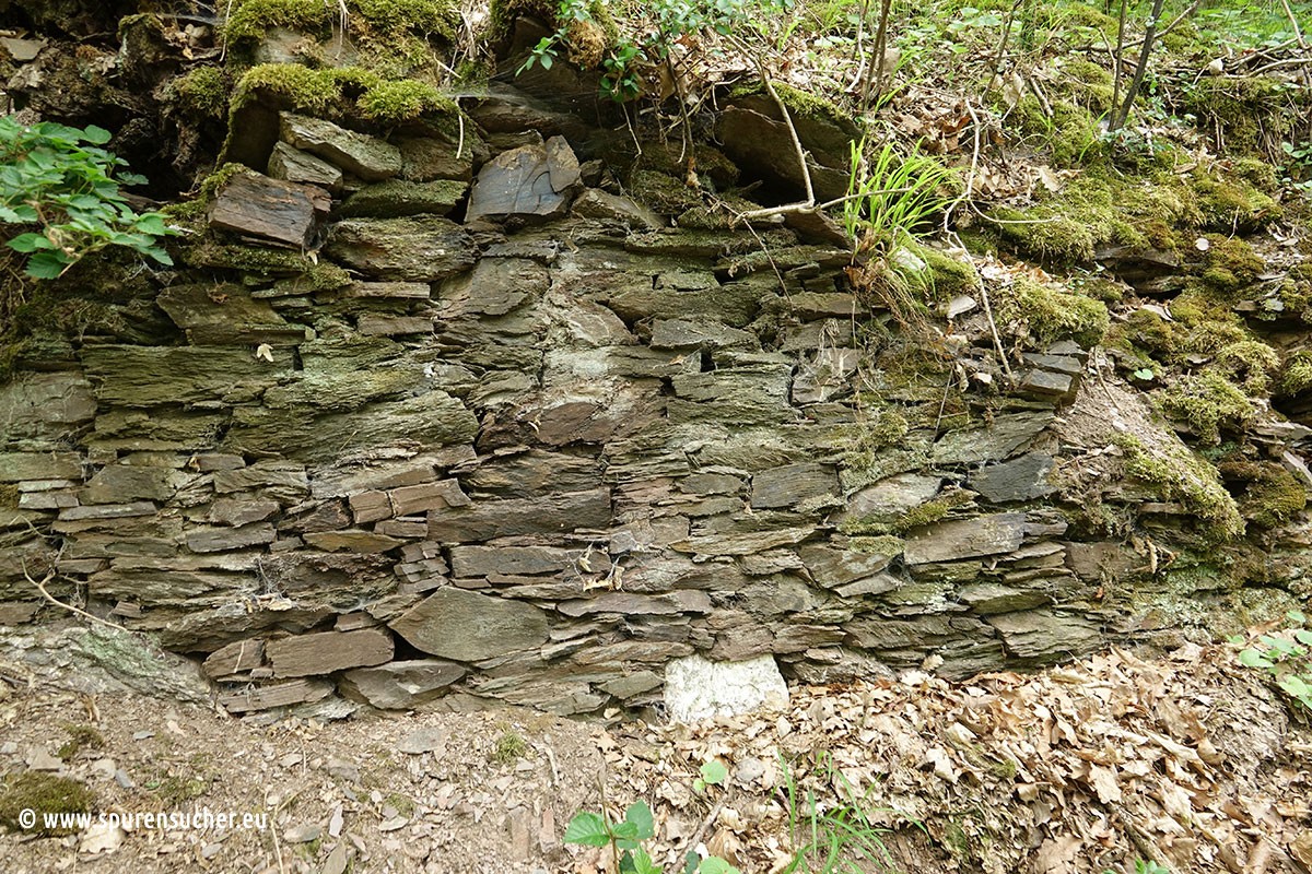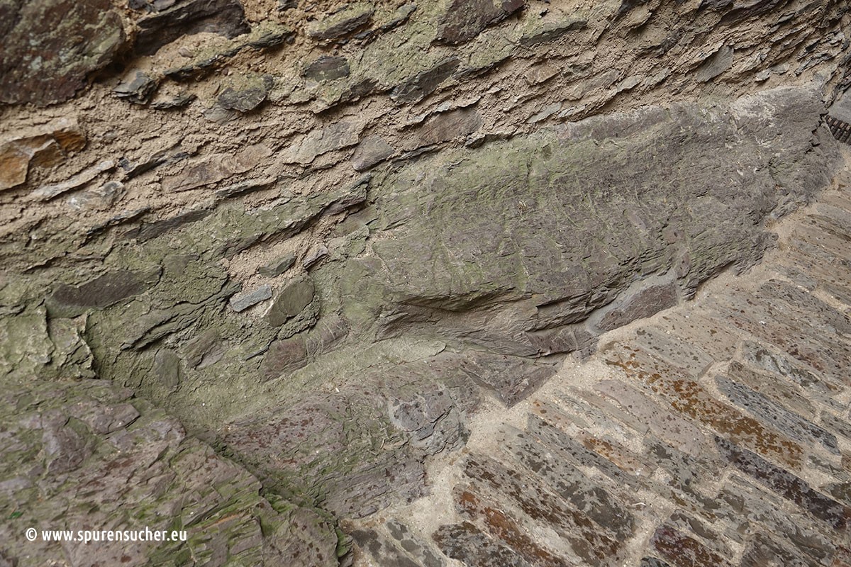 Auf dem kurzen Wanderweg zur Burg kann man an den Rändern verfallene Befestigungseinrichtungen sehen, die entweder Dependancen von Burg Eltz waren oder Reste ehemaliger Angriffslinien …