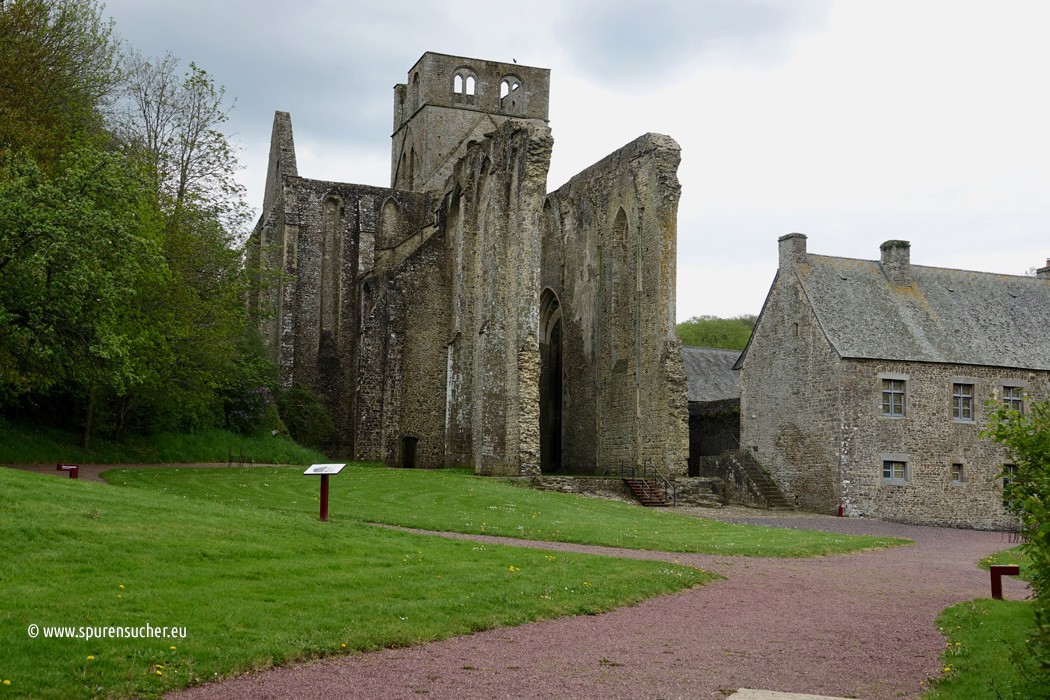 Tatsächlich handelt es sich um eine Ruine, denn es fehlt weitestgehend das Dach, Fenster und ein paar Wände, insbesondere im Eingangsbereich. Seltsamerweise wurde die Abteikirche angeblich 1810 durch kaiserliches Dekret verkauft und in einen Steinbruch umgewandelt. Die Fassade und ein Teil des Kirchenschiffs wurden abgerissen. Dasselbe gilt für zwei Säulen des Chors, was diesen mit der Zeit in Einsturzgefahr brachte. 1860 ließ der Bischof von Coutances zwei grobe Steinpfeiler "springen", um diesen Gebäudeteil zu retten. Mehr war offenbar von Seiten der Kirche damals nicht drin …