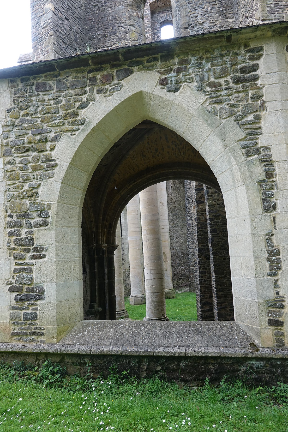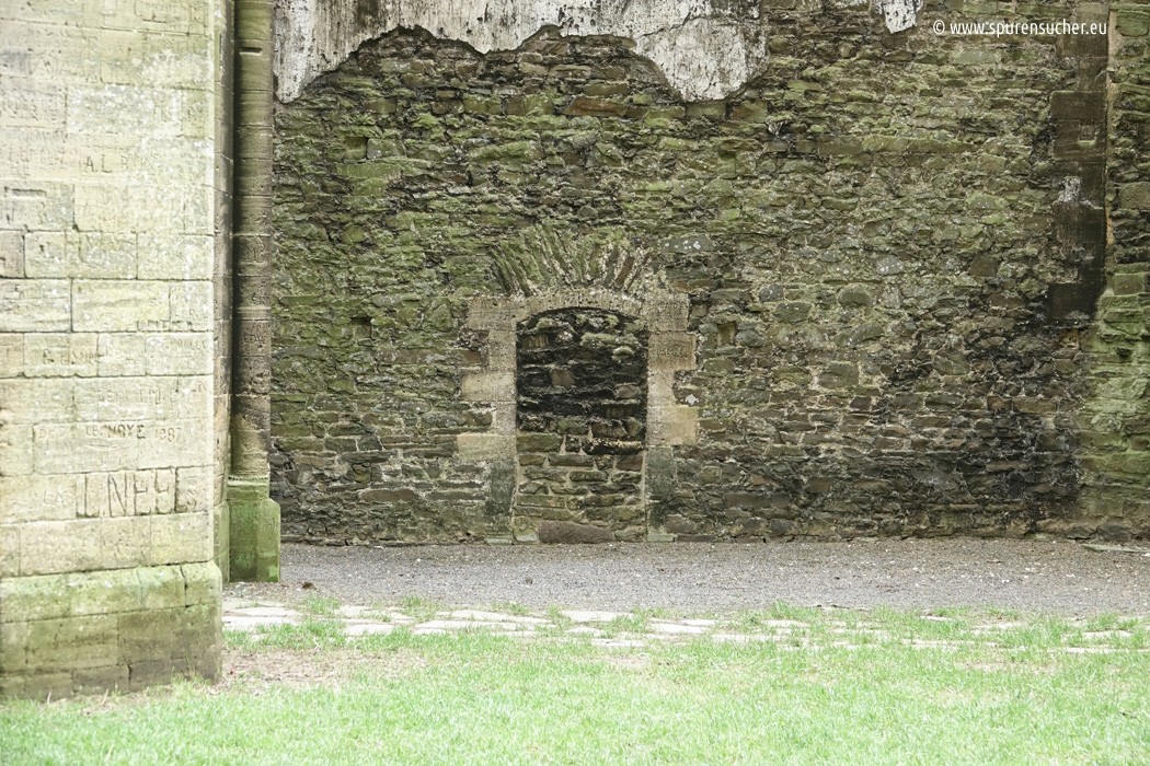 Dieser Fensterbereich von außen zeigt mir deutlich, dass wir uns hier mindestens 2-3 Meter oberhalb des eigentlichen Abteisockels befinden. Ich für meinen Teil kenne sonst keine Kirche oder Kathedrale, deren gotisches Fenster nur knapp 50 cm über dem Boden beginnen.