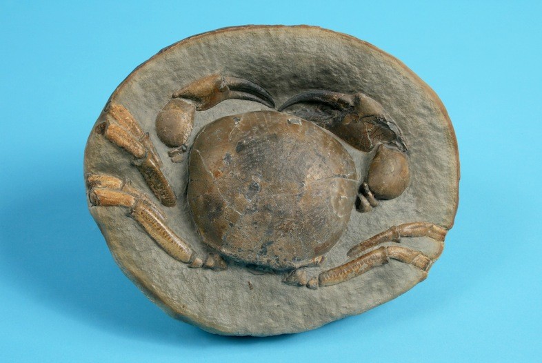Eine versteinerte Krabbe (Tumidocarcinus giganteus) aus der Sammlung des Children's Museum of Indianapolis.