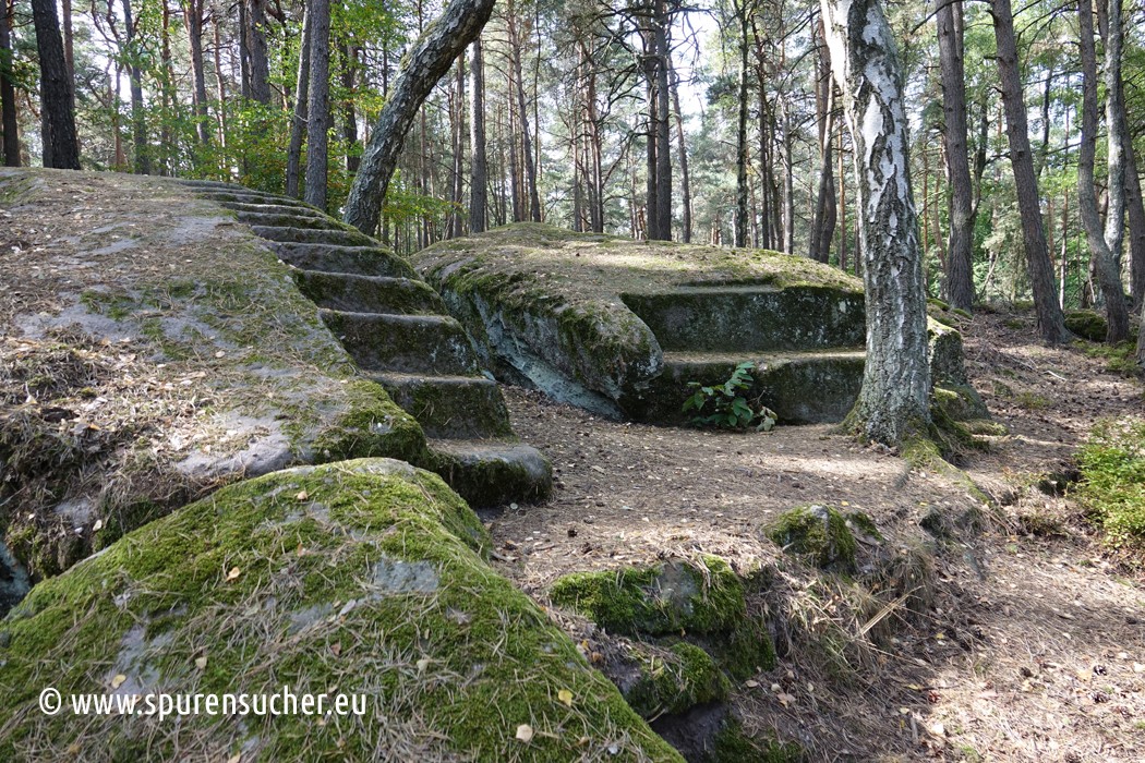 Aufstieg mit 11 Stufen ins Nichts? Dieser Treppenfelsen ist sicherlich kein Überbleibsel einer alten Behausung.