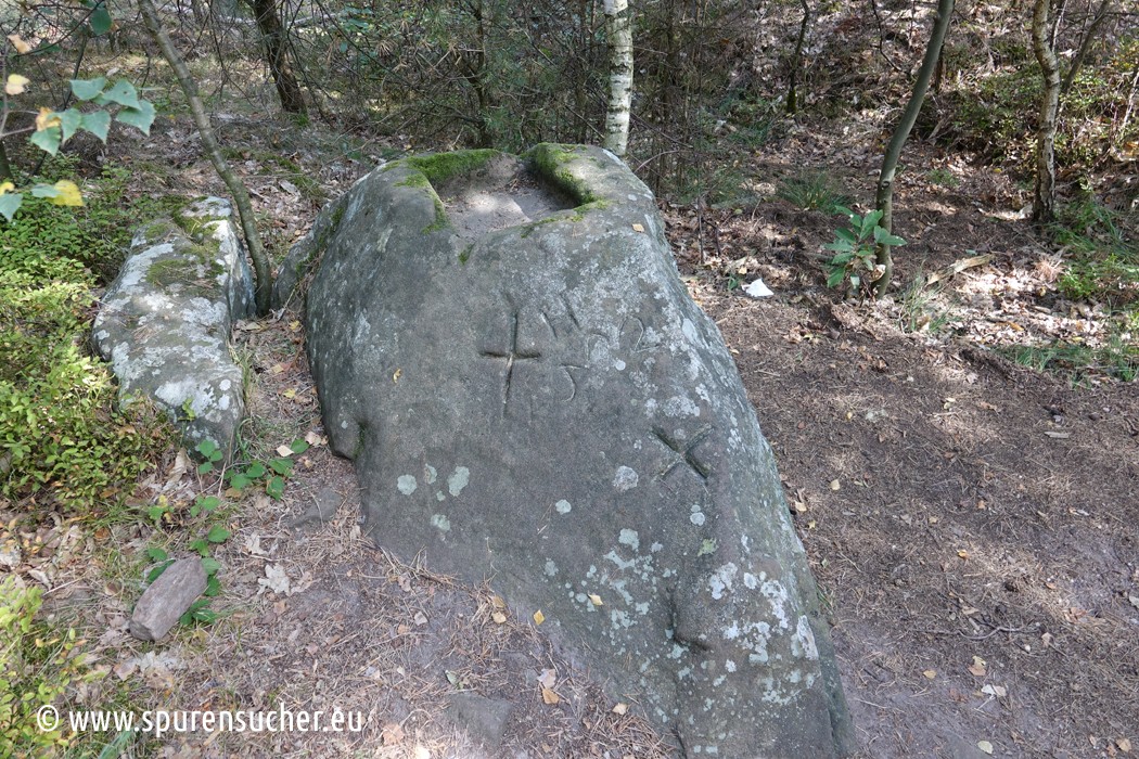 Der Leininger Grenzstein des Grafen zu Leiningen-Hardenburg aus dem Jahre 1595 befindet sich direkt an der "Suppenschüssel".