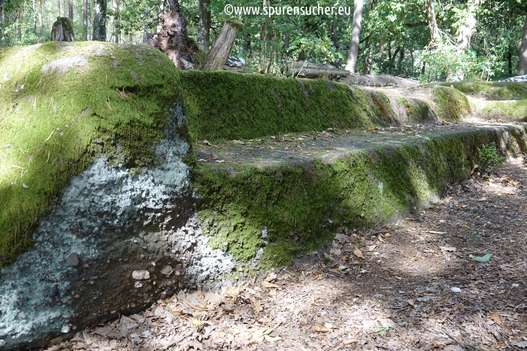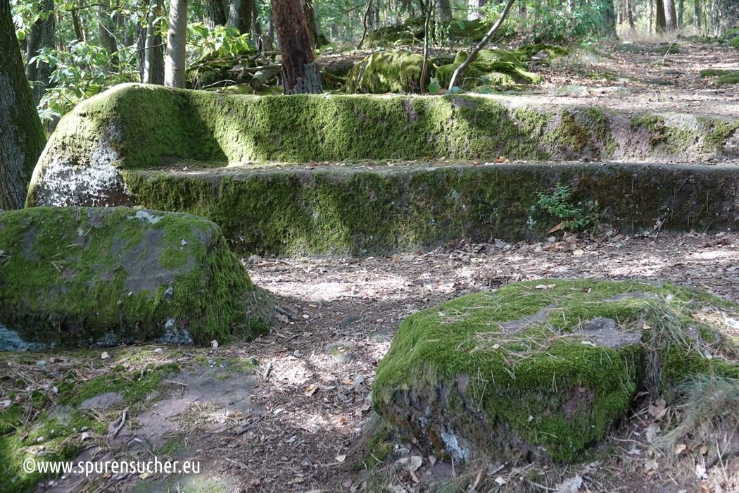 Die Teufelsbank entspricht ein wenig, wenn auch nicht ganz so komplex, der Struktur des Kanapee aus der vorangegangen Etappe (>> Link). Wanderführer haben nur die dürre Erklärung parat: "Eine in Fels gehauene Sitzbank. In der Nähe ein weiterer Grenzstein der Leininger."
