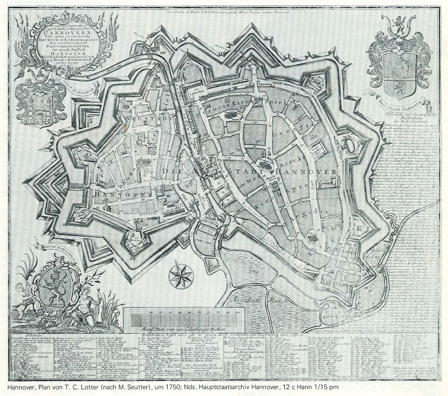 Dass die städtebauliche Anordnung Schloss, Stadt einschl. Befestigungen und Kanalstrukturen keine zufällige Einmaligkeit war, sieht man auch recht eindrucksvoll am Grundriss von Wolfenbüttel (siehe Link, leider habe ich keine Nutzungsrechte, die alte Karte von Wolfenbüttel hier direkt zu veröffentlichen) oder in ähnlicher Weise auch Hannover. Nichts von diesen Ingenieurskünsten wurde hier erhalten, sondern alles komplett zerstört.