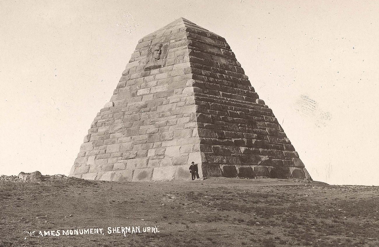 Die Arbeiter errichteten die Pyramide also etwa 300 Meter südlich der Gleise ihrer Eisenbahnlinie auf einem kleinen Hügel. Als das Ames-Denkmal 1882 fertiggestellt wurde, befand es sich 91 m südlich und 9,8 m über der höchsten Erhebung des ursprünglichen Gleisverlaufs der transkontinentalen Eisenbahnlinie Union Pacific. Präsident Rutherford B. Hayes unterstrich die Bedeutung der transkontinentalen Eisenbahn und damit der Brüder Ames, indem er an der Einweihungszeremonie des Denkmals teilnahm.