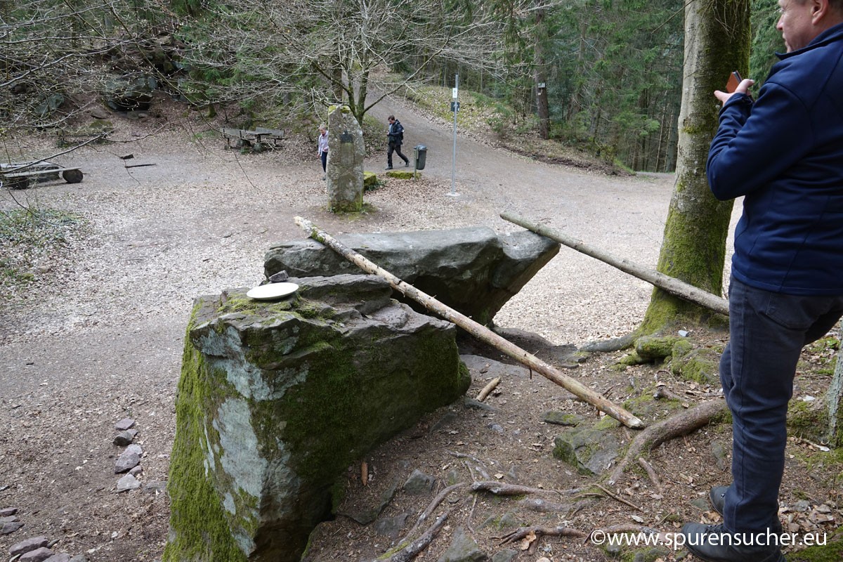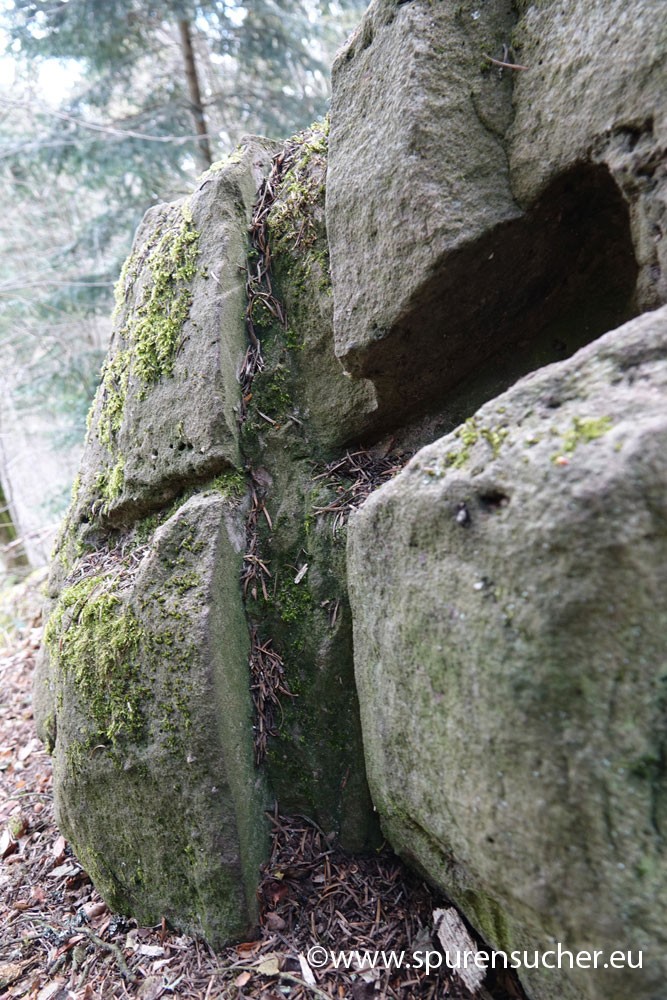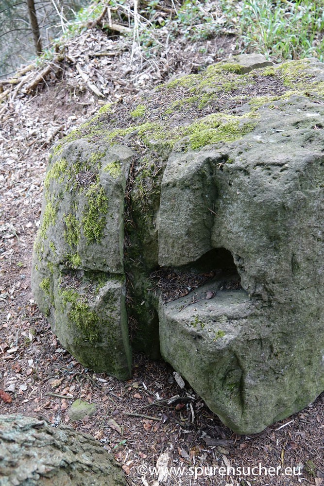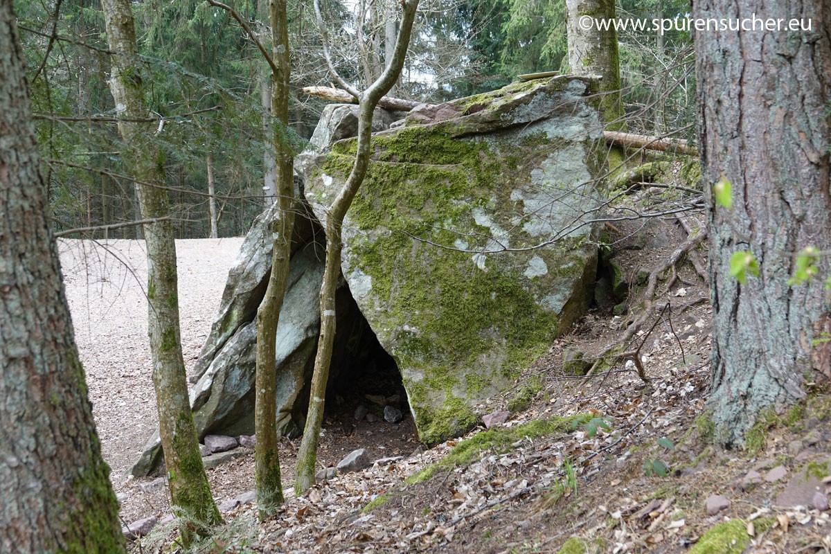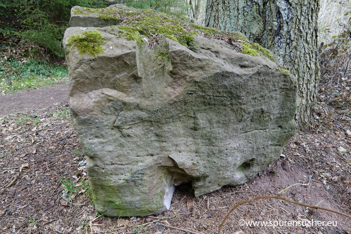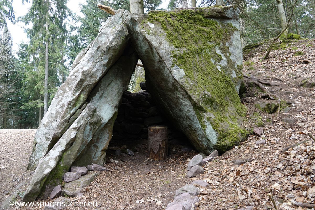 Der Ort hat jedenfalls noch einiges mehr zu bieten, als ein paar Buntsandsteinplatten, die aneinander lehnen und zweifelsohne künstlich bearbeitet bzw. aufbereitet wurden. Ob hier vorher einmal eine uns aufgrund bekanntere Dolmenstruktur gestanden hat, deren Überreste in dieser untypischen Form Rätsel aufgeben, ist fraglich. Diese zeltartige Dolmenstruktur ist jedenfalls auch in Frankreich und Portugal vorgekommen.