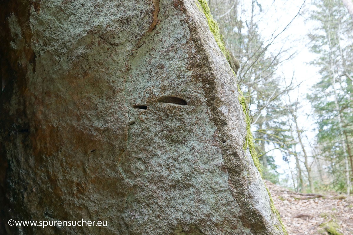 Dieser Felsen in unmittelbarer Nähe zeigt umfangreiche Bearbeitungsspuren.