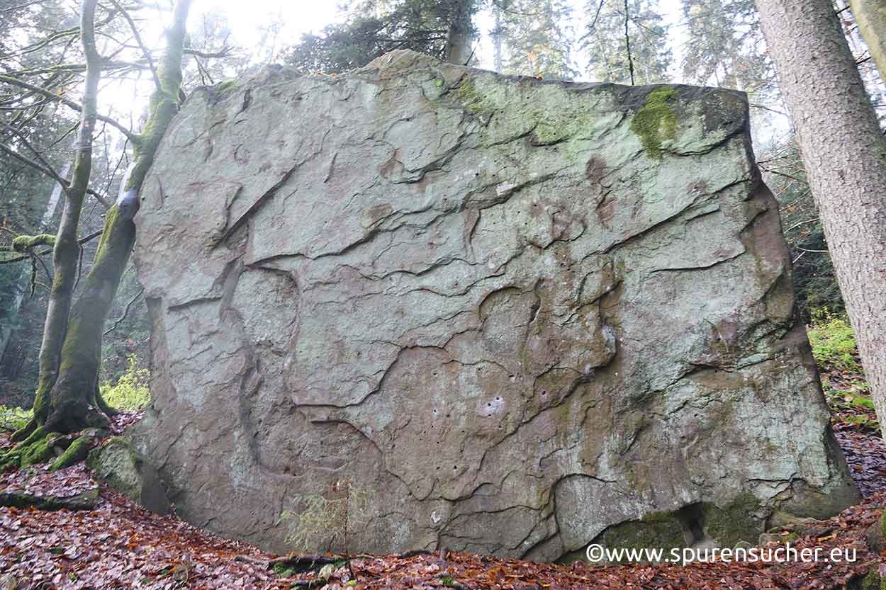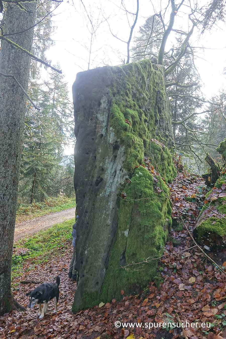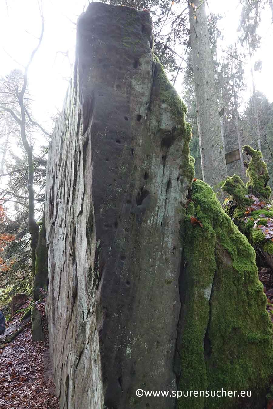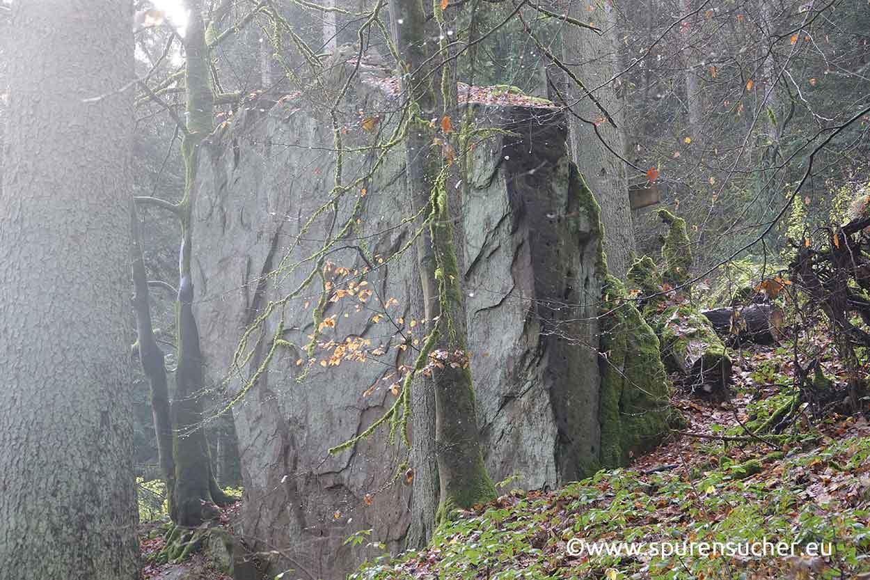Eine mehr als 5 Meter hohe flache Felsplatte in der Kurve eines Wanderwegs bei Neubulach lädt zum Grübeln ein. In der Frontansicht ähnelt sie der Rune Uruz, speziell wenn man den oberen Rand verfolgt. Uruz steht für Kraft und Veränderung – etwas, das wir in diesen und vor allem den kommenden Zeiten sicherlich gut gebrauchen können.