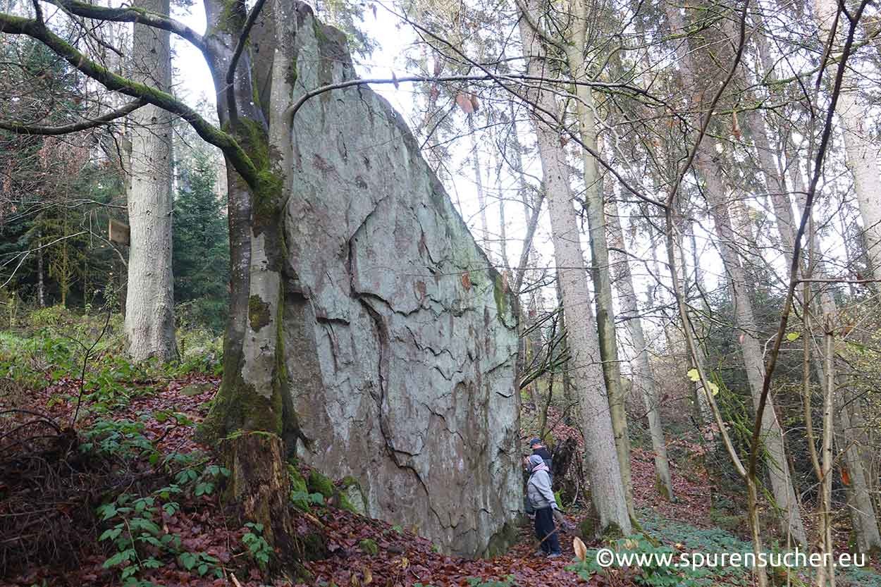 Auffällig ist die fast lotrechte Ausrichtung der Platte. Ein solcher Koloss als freistehendes Objekt mit derartigen Flächenlängen dürfte außergewöhnlich selten zu finden sein. Wie weit sie in den Boden geht, ist unklar.