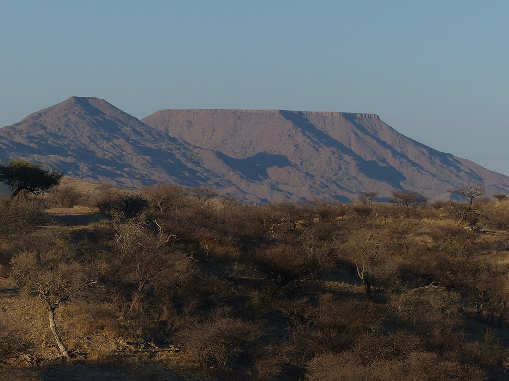 Sicht auf den Gamsberg im Morgenlicht von Hakos aus