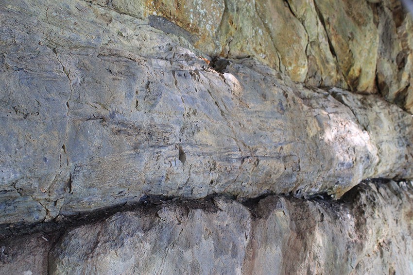 (Abbildung: Querliegender versteinerter "Stamm" in Laas); © Raul de Chissota, Public domain, via Wikimedia Commons; >> Bildlink