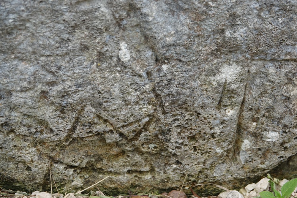Ich musste allerdings selbst lange suchen, nachdem ich vorher einen Tip bekommen hatte. Ich glaube, ich habe gefühlte hundert Mal den erratischen Felsen umrundet, bis ich dann letztlich doch fündig wurde. Der Clou an der Sache: Die Gravuren befinden sich nicht auf Gesichts- sondern eher auf Schienbeinhöhe. Das erklärte am Ende auch, warum ich dafür so lange gebraucht hatte.
