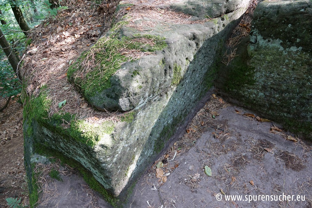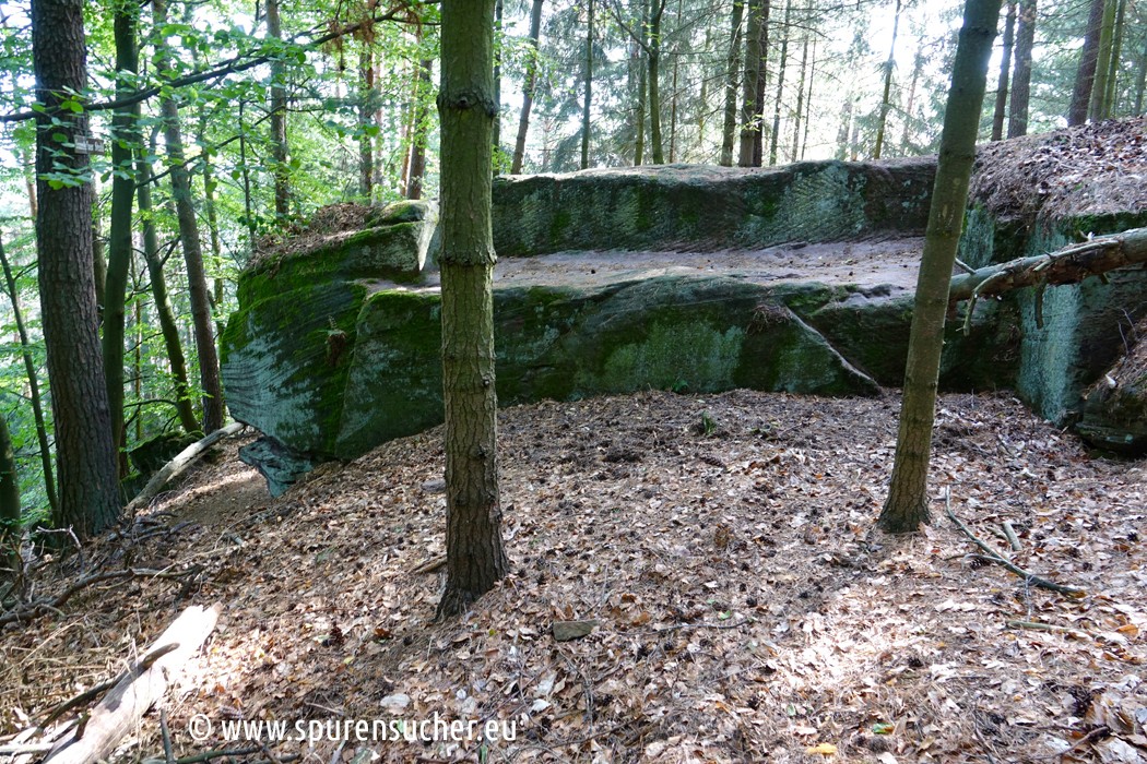 Another stage on the "historical circular path of Leistadt": The Krummholzer chair. This is the rest of a megalithic complex on the highest point of the trail. Scientific explanation: "Roman quarry in the 2nd and 3rd centuries. It was exploited for parts of the city wall in Worms and for stone coffins ...".