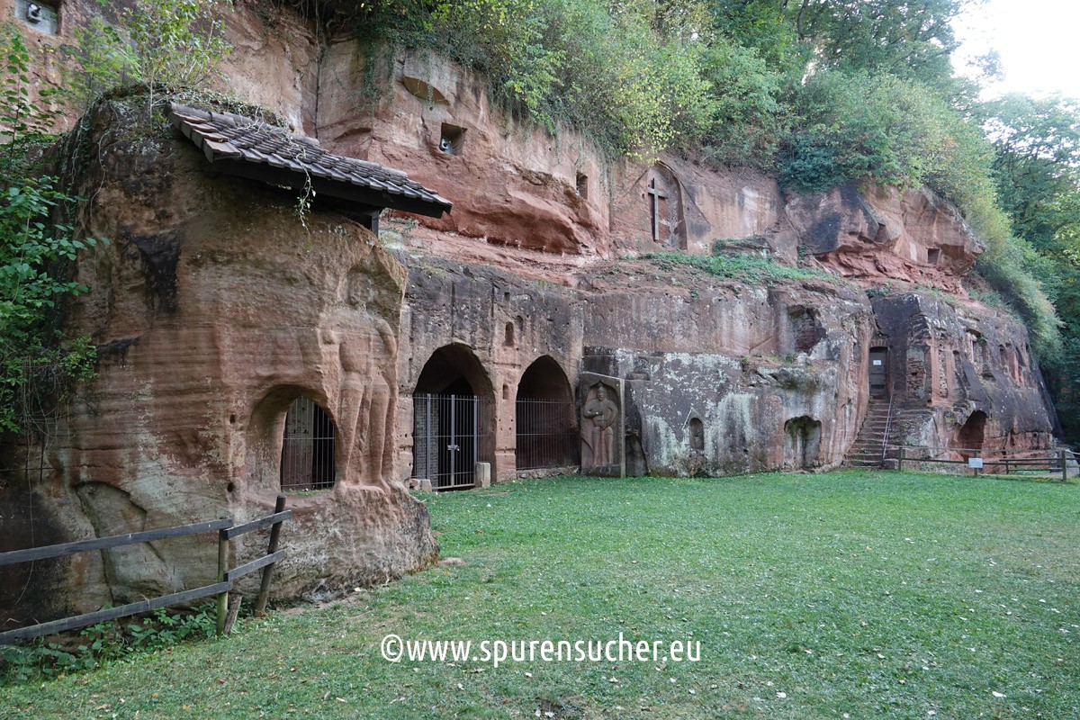 It is said to have been really lively there from the 16th century onwards. Since the early Middle Ages, Christian churches have gradually been built on the open space in front of the rock face. The last one is said to have been demolished as early as 1819 due to its dilapidation. Over the centuries, the rock face became the new home for a total of 23 hermits. Up to four hermits lived there at the same time at the most, to look after pilgrims and other visitors and to extend and maintain the buildings. One of them fell from the rock at the age of 82 (in 1827).