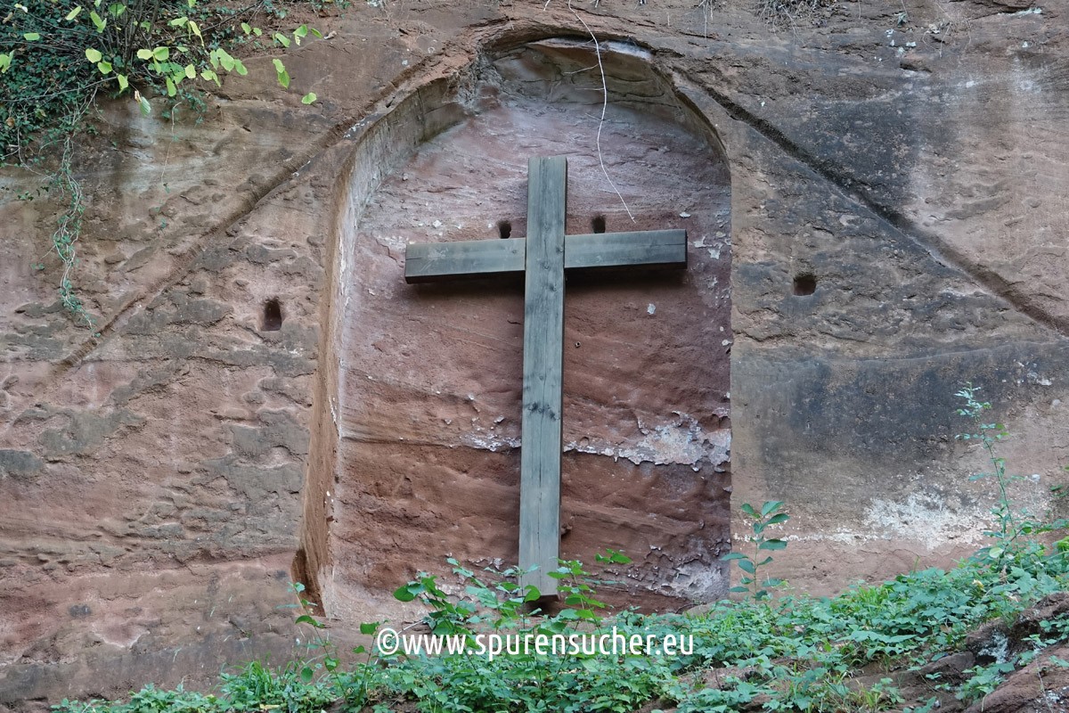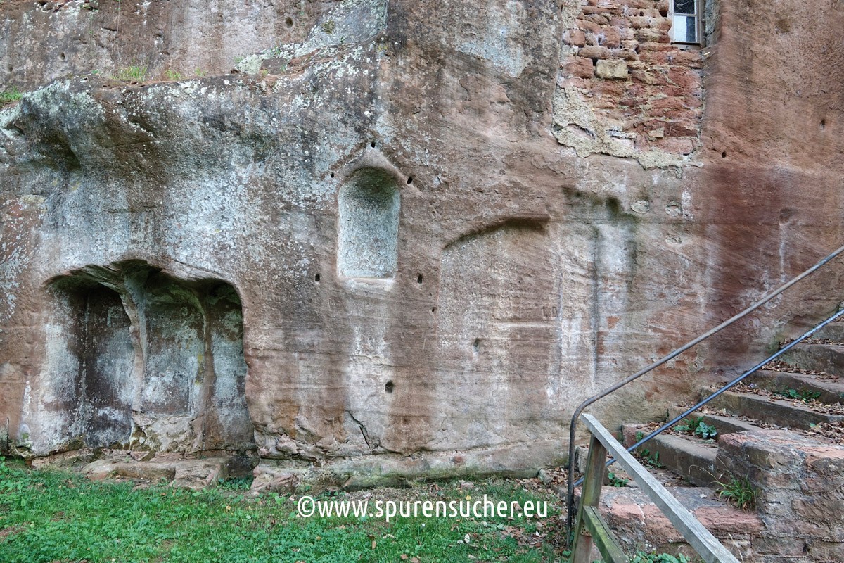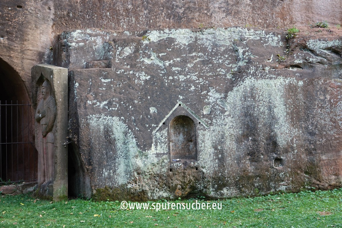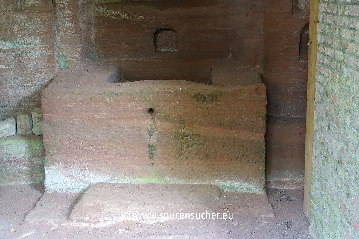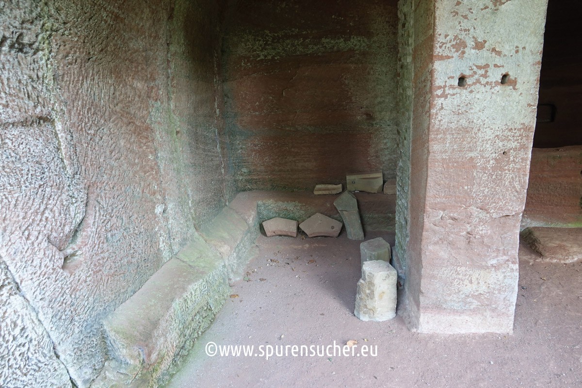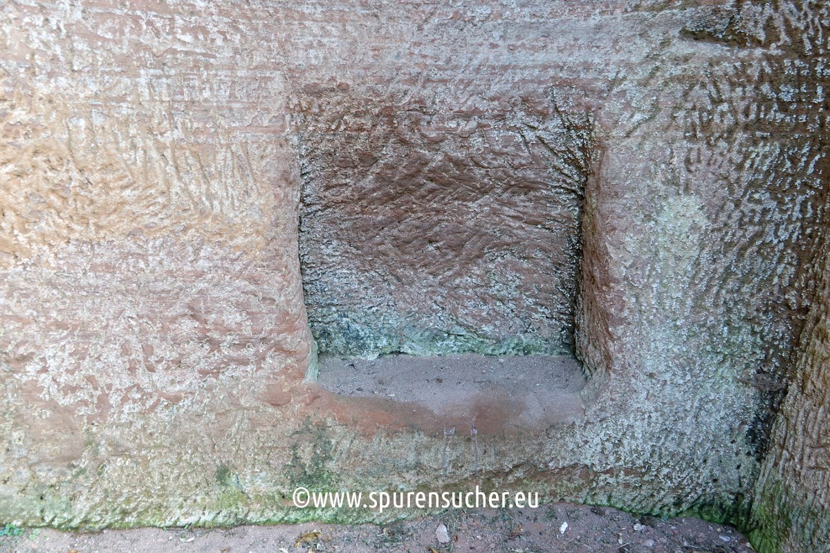 This right-hand section of the "Felsenkapelle" is also unlikely to have been provided with a side pedestal inviting you to sit down. Equally striking are the small wall indentations.