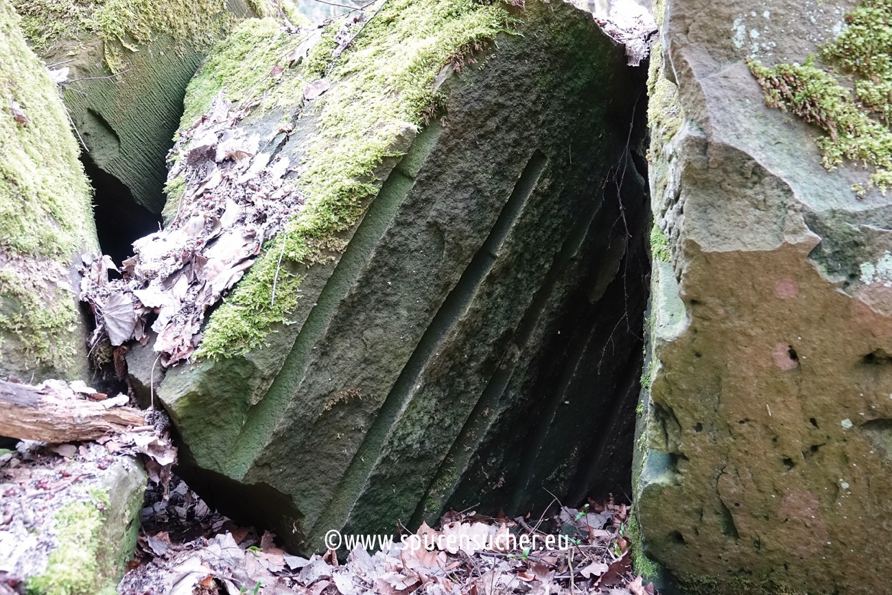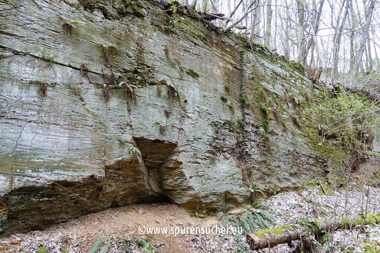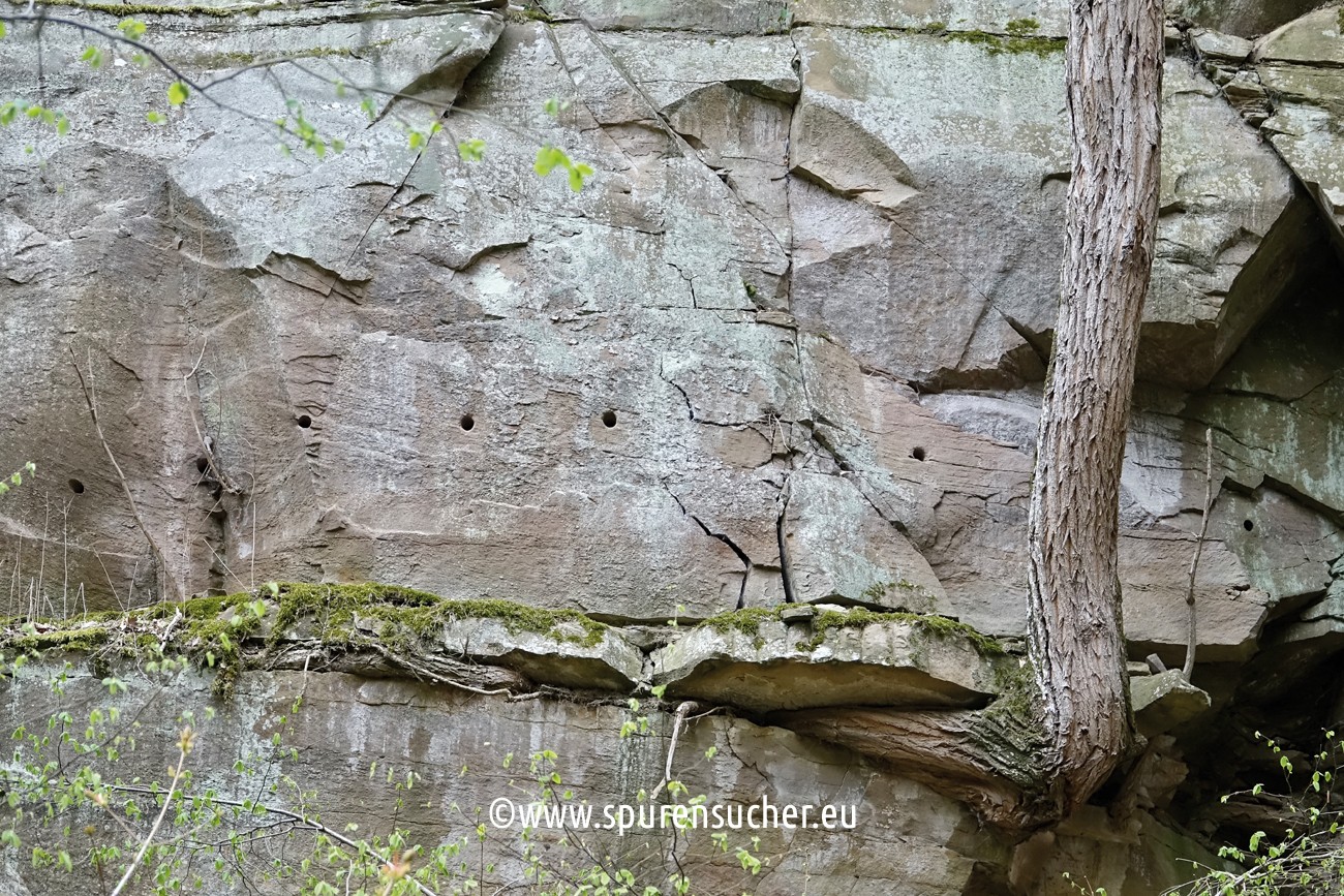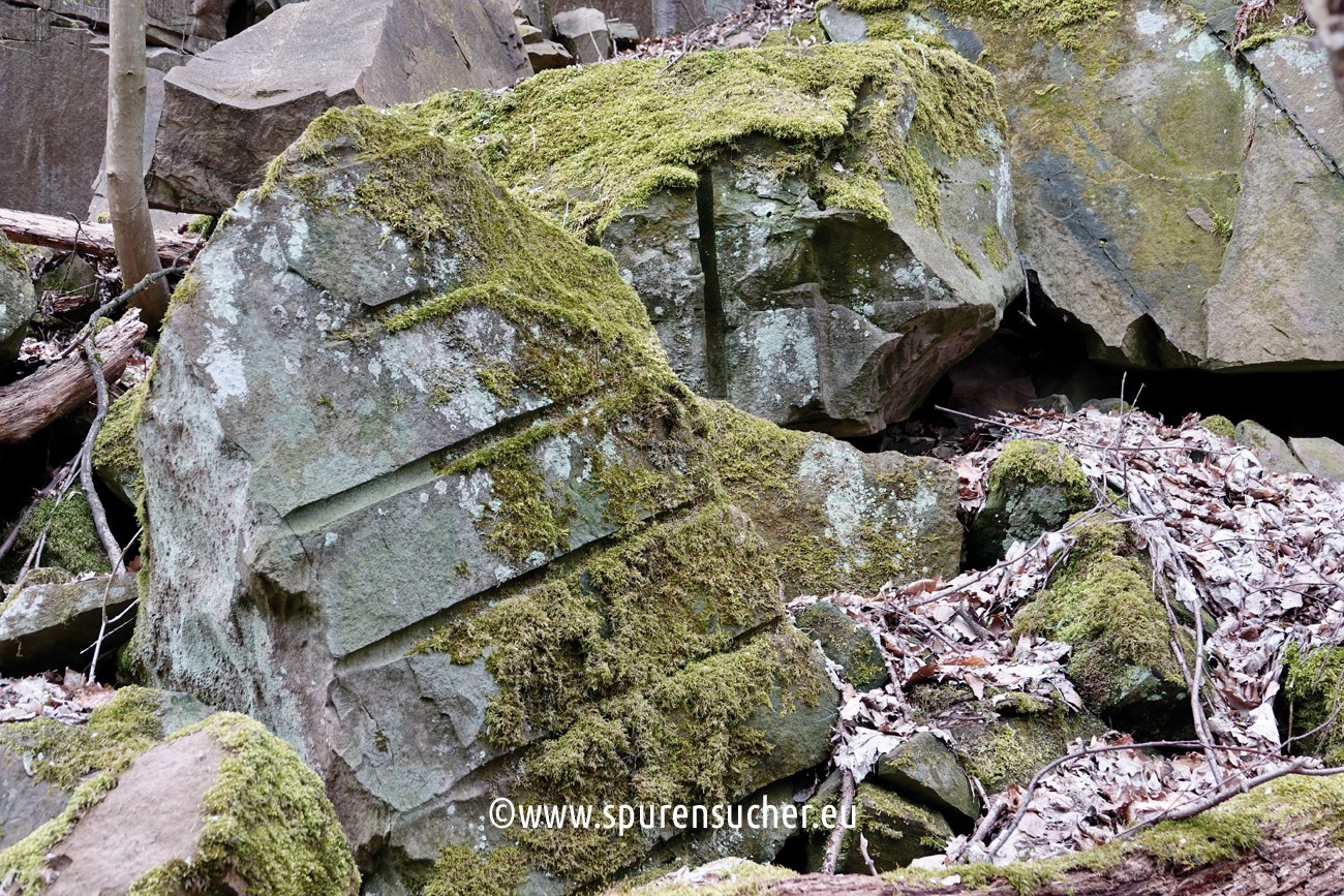 If one enters the aisles, accessible to walkers, of the approximately 20-hectare site where quarrying once took place, the height of the remaining side walls reveals the corresponding rock potential to the curious eye. However, the part of the massive rock area that was mined from is only a fraction of the site, amateur Cairn explorers claim. According to them, the demolition wall is on the backside of a former cairn, the traces of which are still unmistakable today.