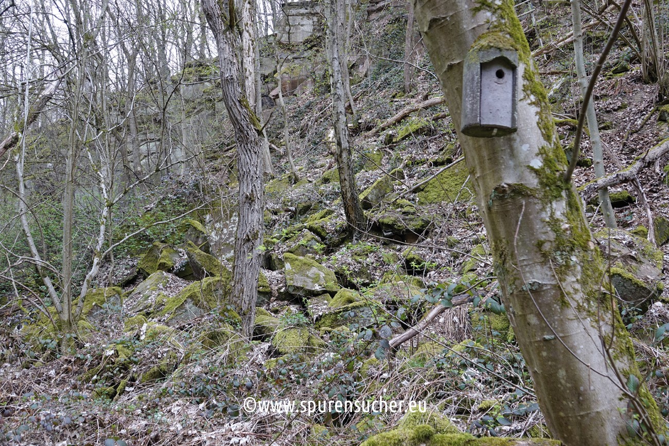 Moreover, according to a publication on the quarry period, which lasted from the end of the 19th to the beginning of the 20th century, it is known that most of the overburden and stone rubble from the ashlar production was already sold as an additive for concrete and for road construction (Rolf Albert Burrer, "Der Steinhauer an der Arbeit", 1911 in the chapter "Gewinnung des Rohmaterials", p. 62). (Source). So one can confidently assume that we are not dealing with a classic spoil heap here. Of course, I will be glad to be proven wrong later.