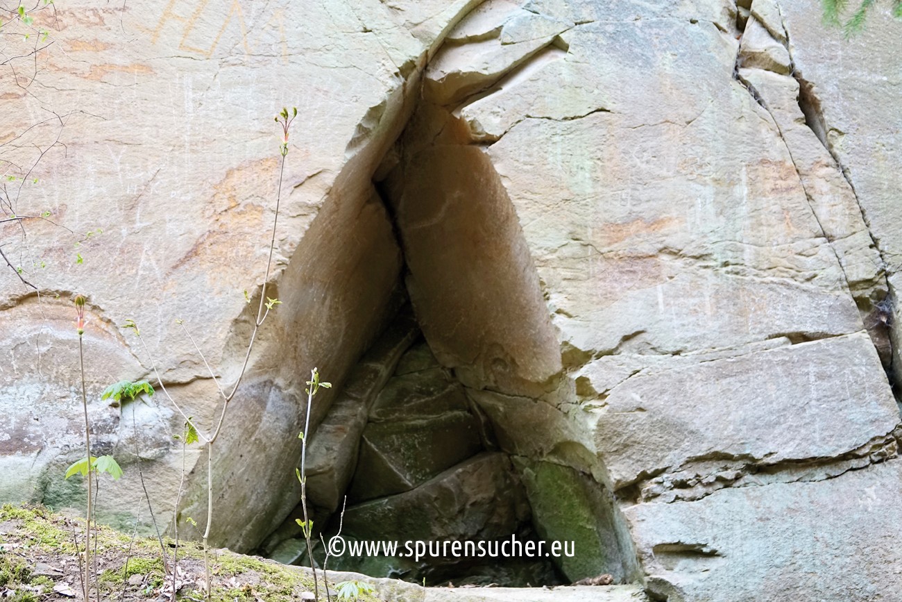 Pyramid-shaped deep niches that make no sense at first or second glance. If you look behind them, you come across a jumble of rocks.