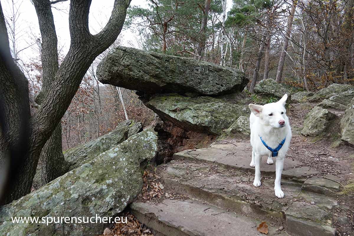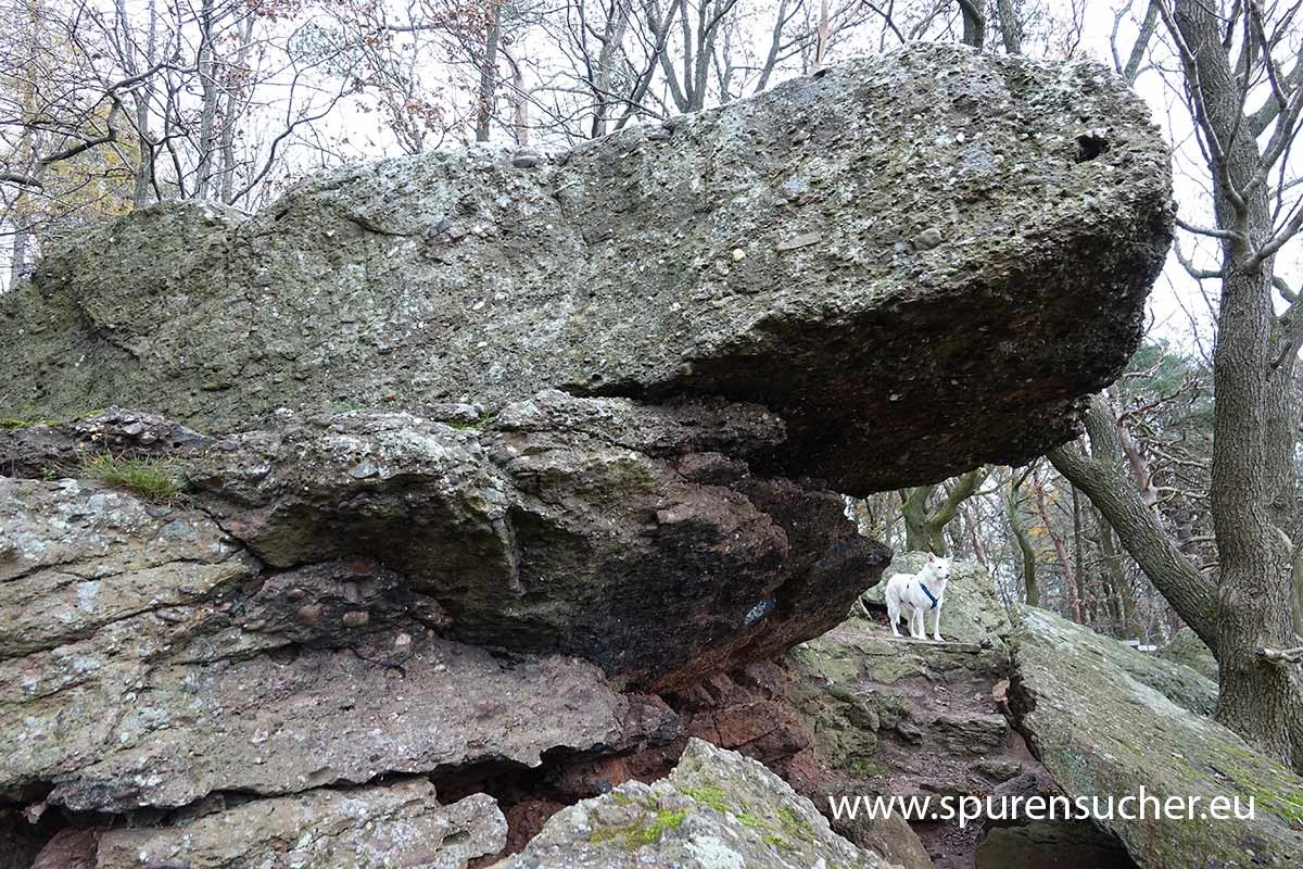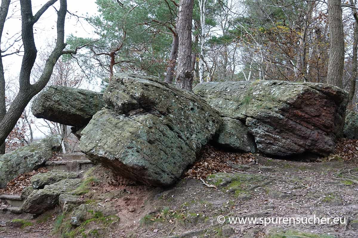 Not far from Nideggen in the Eifel there is a group of rocks that seems to be standing on end at the upper edge of a slope. Is it just a glacial "circumstance" or are we dealing with working traces here? Is it the "arrangement" of a building of the ancients or are we not rather subject to an all too vivid imagination of an exuberant fantasy?