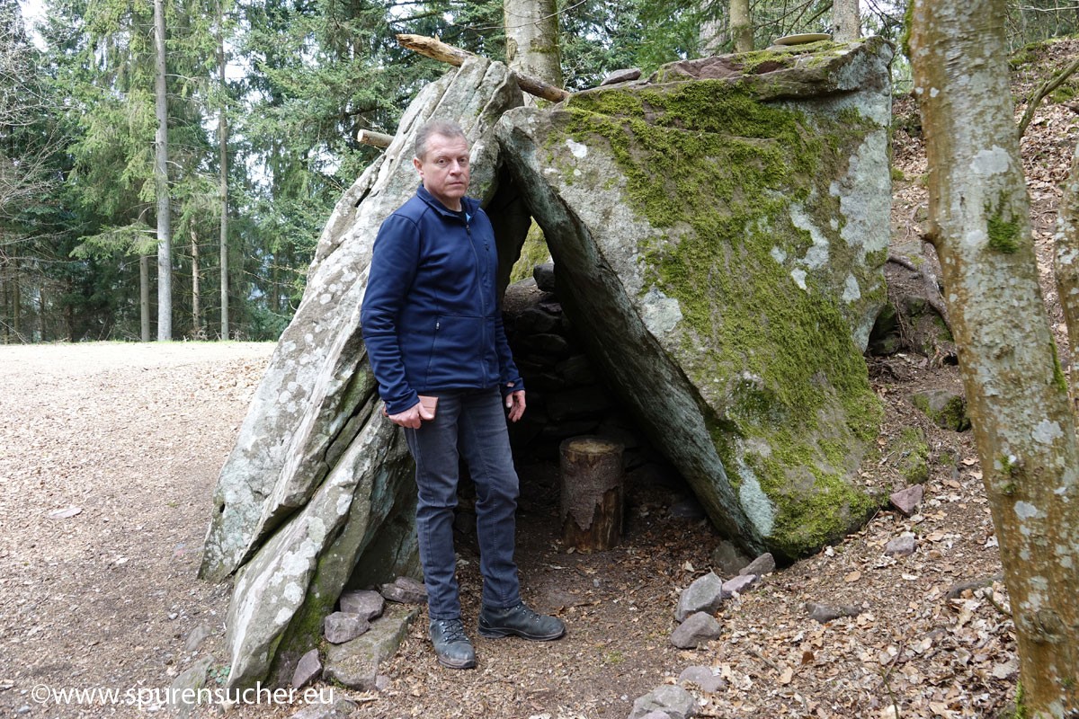 In any case, the site has a lot more to offer than a few red sandstone slabs leaning against each other, which have undoubtedly been artificially worked or prepared. It is questionable whether a more familiar dolmen structure once stood here, whose remains in this untypical form pose a riddle. In any case, this tent-like dolmen structure has also been found in France and Portugal.