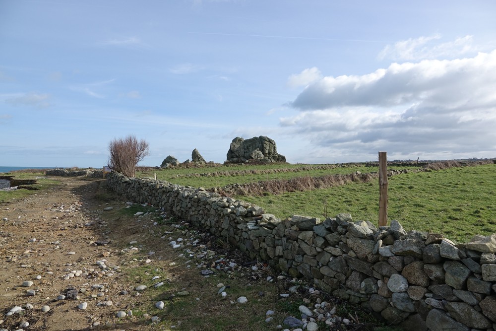 Anomalie im Strandbereich: Der Roche Gélétan ist bereits von weitem als Felsenburg unübersehbar