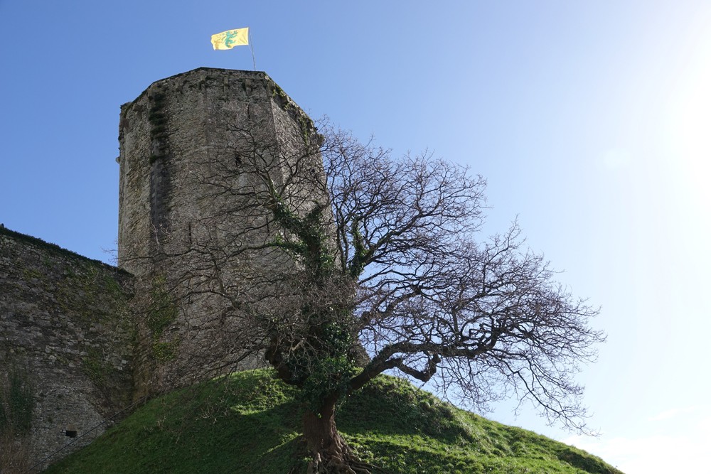 Bricquebec ist ein idyllisches kleines Örtchen im Herzen der Normandie, dem Département Manche. Das Schloss von Bricquebec wird von runden, sechseckigen und viereckigen Türmen flankiert, die nur von einem polygonalen Bergfried mit elf Seiten getoppt werden, was in Europa einzigartig ist und die Geschichtsdeuter der militärischen Baukunst zuschreiben wollen. Sicherlich ist diese Architektur ein Fall für sich. (Abbildung des vieleckigen Bergfrieds)