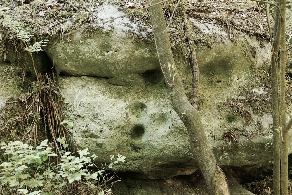 68 Meter soll er hoch sein, der Isterberg. In der Gegend von Nordhorn und Bad Bentheim befindet er sich praktisch in Rufweite der holländischen Grenzen. Nur zwei Autostunden von mir entfernt besuchte ich die „Isterberger Klippen“, die lt. archäologischen Funden zumindest bereits vor 8.000 Jahren Zivilisationsspuren hinterließen. Ich habe diesen Ausflug spontan geplant und mir bewusst keine theoretischen Vorkenntnisse mit ins Gepäck genommen, was nicht immer empfehlenswert ist. Andererseits mag ich es auch ganz gerne, mir eigene Eindrücke zu verschaffen und anschließend mit den Erklärungen, Erlebnisse und Aufzeichnungen anderer Leute abzugleichen, … wohlwissend, sich über Unterlassenes oder Unbemerktes zu ärgern bzw. sich verpflichtet oder motiviert zu fühlen, später nochmals dorthin zu fahren.