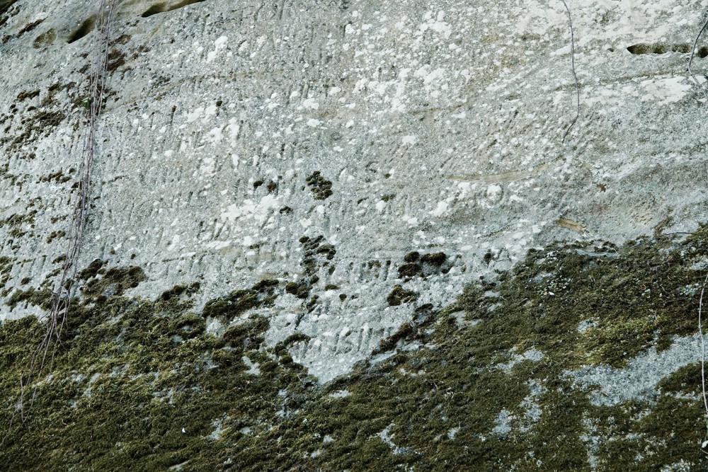 Hier die vorgelagerte Plattform, die möglicherweise den Sockel für die Bearbeitung der darüberliegenden Wand bildete. Wer wurde hier als erster tätig?
