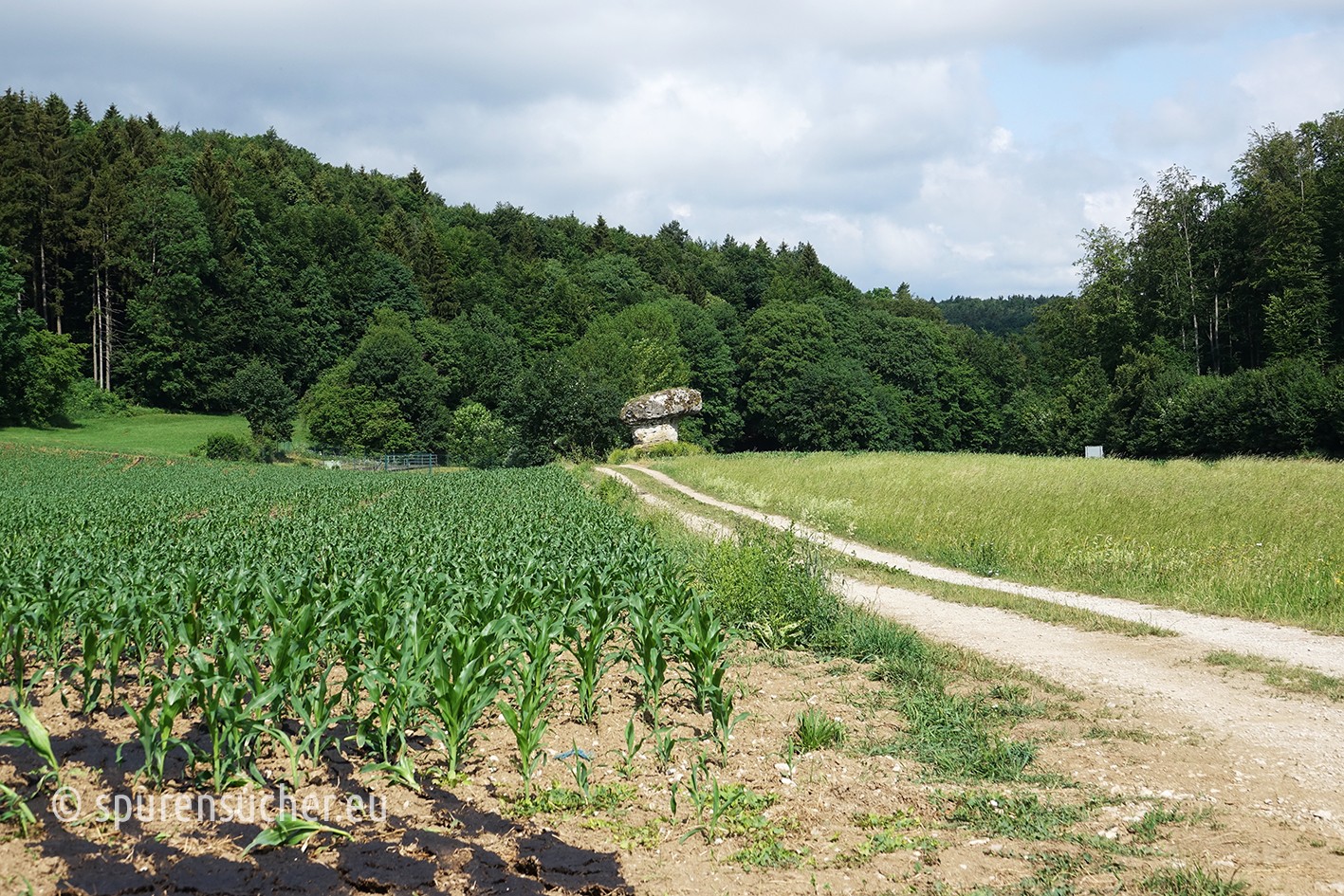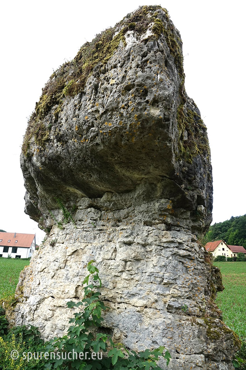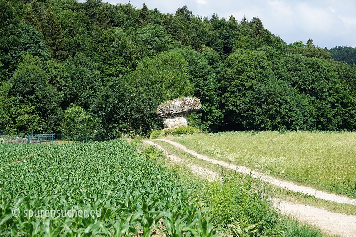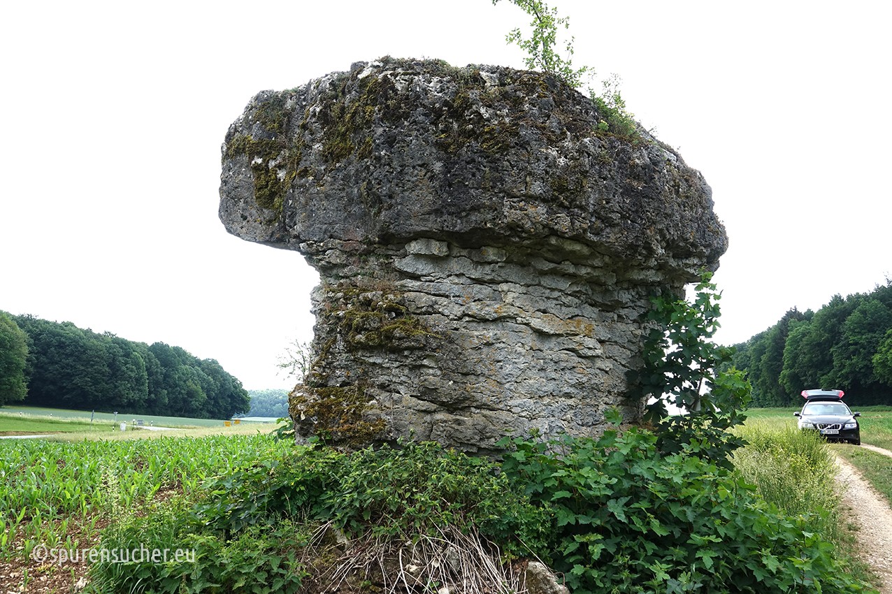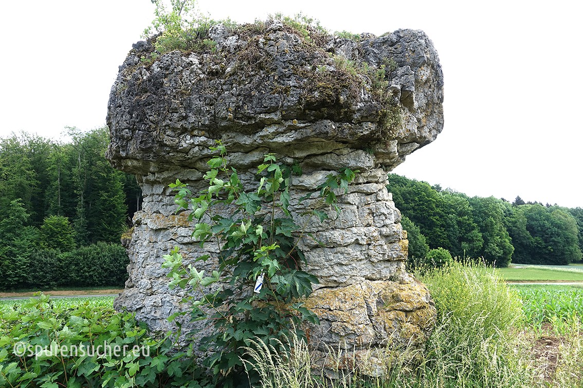A strangely shaped rock in the middle of the fields dominates the landscape due to its solitary position. Since there is no other rock in the vicinity far and wide, a small detour is worthwhile itself, in order to take it under the magnifying glass.