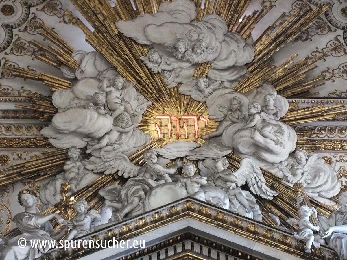 Bislang war mir nicht bekannt, dass dem jüdischen (Wüstendämon?) (jüdischer Gott aus dem AT?) Jahweh die dauerhaft währende katholische Gottes-Absolution erteilt wurde. Nicht minder war ich überrascht, den hebräischen Schriftzug Jahwe in einer katholischen Kirche in Palermo zu entdecken.