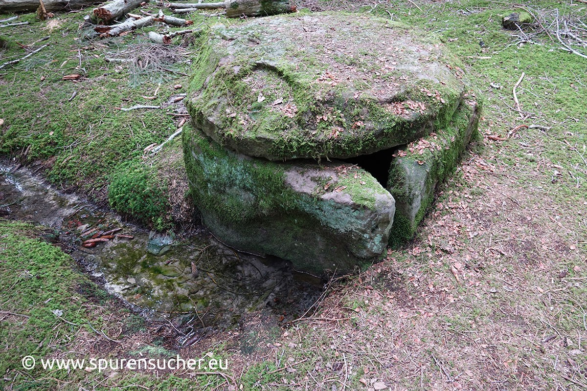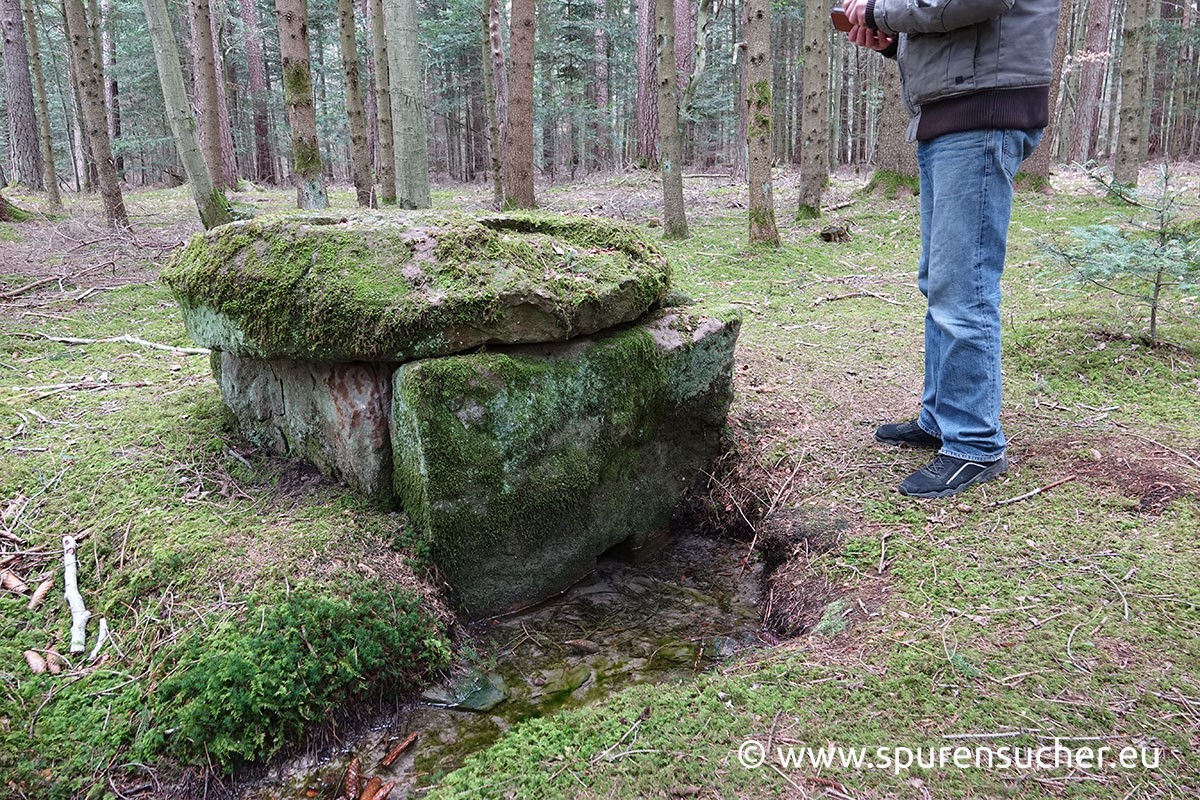 Das schwieige Gelände, tonnenschwere Seitenwände und eine ebenso wuchtige Deckenplatte lassen die Frage aufkommen, wem diese Quelle einst so wichtig war. Und vor allem: Wie sind die Bauteile dorthin gekommen.