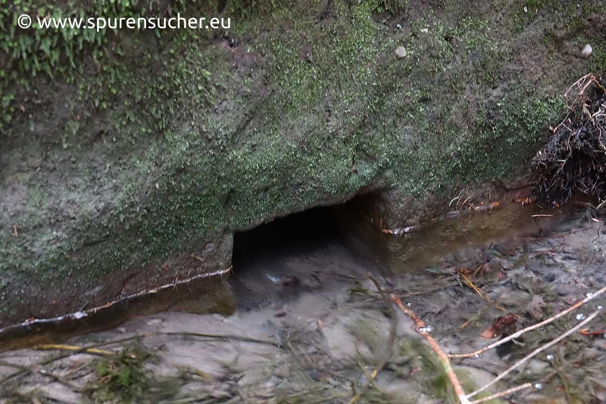 Wir haben uns eine ganze Weile dort aufgehalten, diese Quelle ist wirklich interessant. Das Wasser entweicht einem Auslass in der Seitenwand und folgt anschließend einem Bachverlauf. Am Seitenauslass selbst ist praktisch überhaupt keine Fließgeschwindigkeit zu spüren oder zu beobachten. Erst, wenn man ein paar Meter dem Bächlein folgt, erkennt man eine geringfügige Strömung, die das Wasser in Bewegung hält. Ansonsten könnte man glatt mutmaßen, die Quelle sei längst versiegt. Trotz optisch stehendem Gewässer ist also hier noch reichlich aktiv.