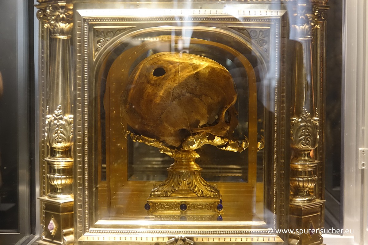 Irgendein Ammenmärchen hat die Kirche ja immer zu bieten, der Exhibitionismus sterblicher Überreste genießt dabei schon mal oberste Priorität. Da dieses Relikt nicht in irgendeinem unterirdischen Kellergewölbe aufbewahrt wird, sondern dort im “Schatzraum“ gleich als erstes zu sehen ist, setzt man offenbar gerne auf morbide Anziehungskräfte – nicht zuletzt, um damit auch den Klingelbeutel gleich mit füllen zu lassen.