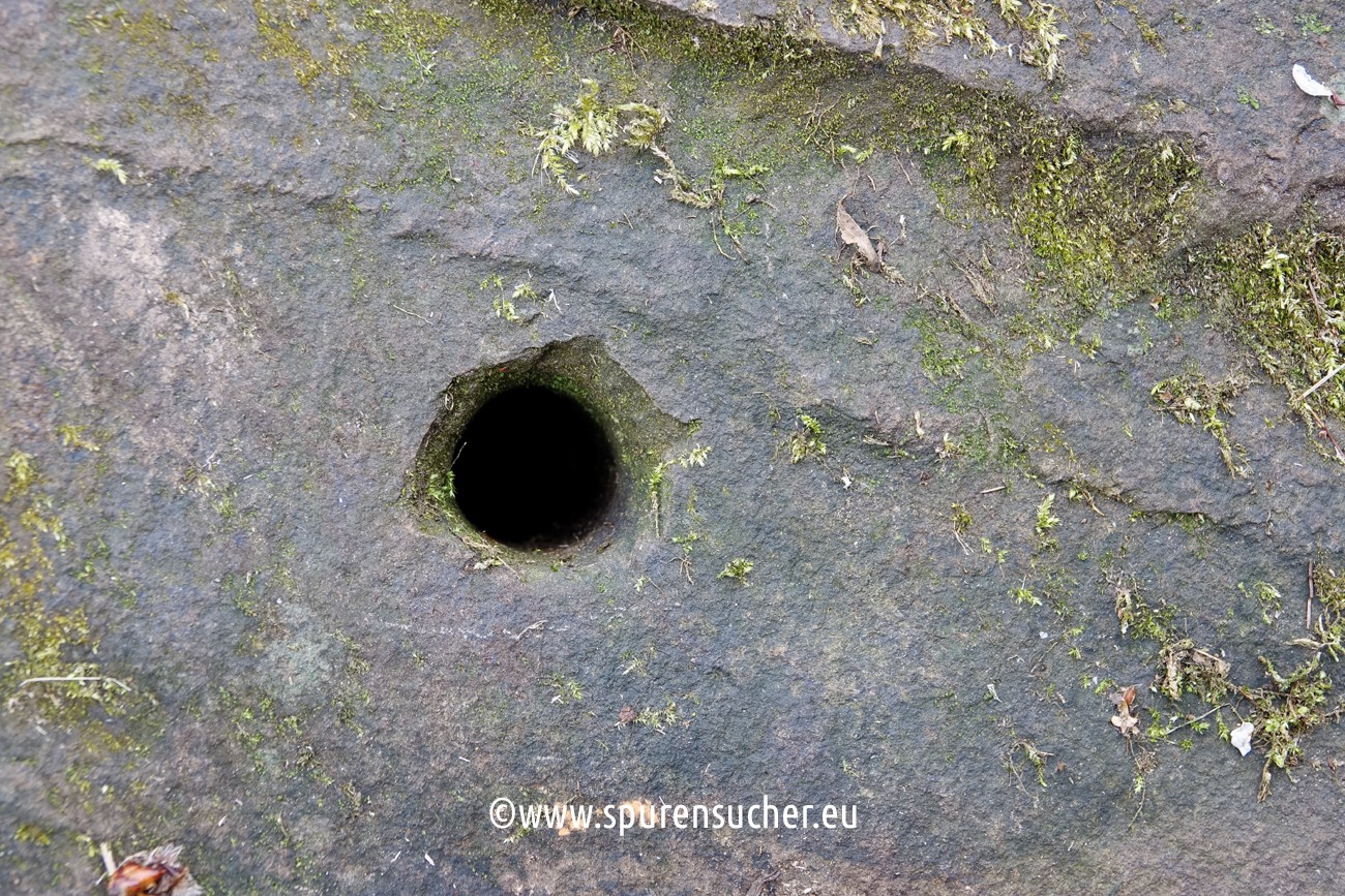 Löcher für Sprengsätze oder etwas völlig anderes? Warum sollten diese nach der Sprengung noch erhalten sein.