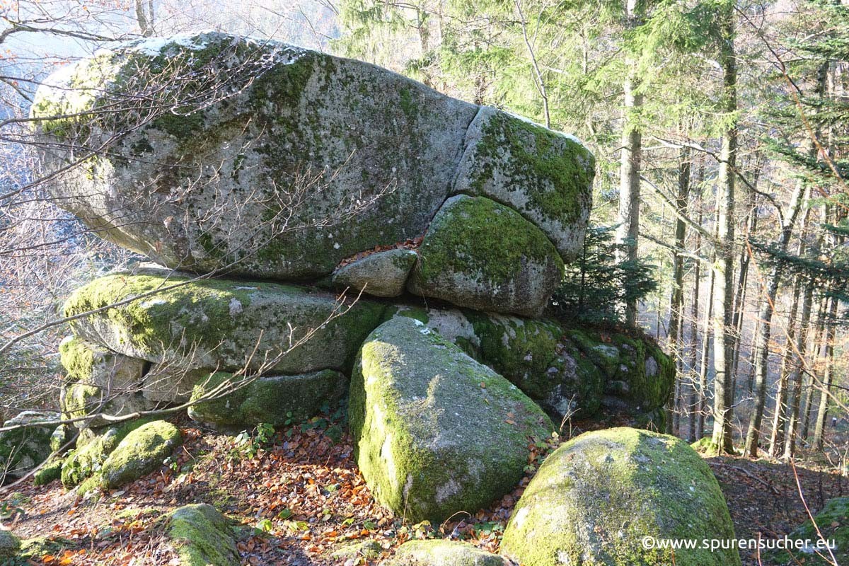 Der Schwarzwald bietet mitunter interessante Kultplätze, an denen sich die Geister scheiden. Weniger die wissenschaftlichen, denn die haben sich längst festgelegt. Oberhalb von Yach bei Elzach steht auf einem Bergvorsprung eine imposante Felsformation, die aus Geologensicht das Ergebnis einer Wollsackverwitterung sein soll.