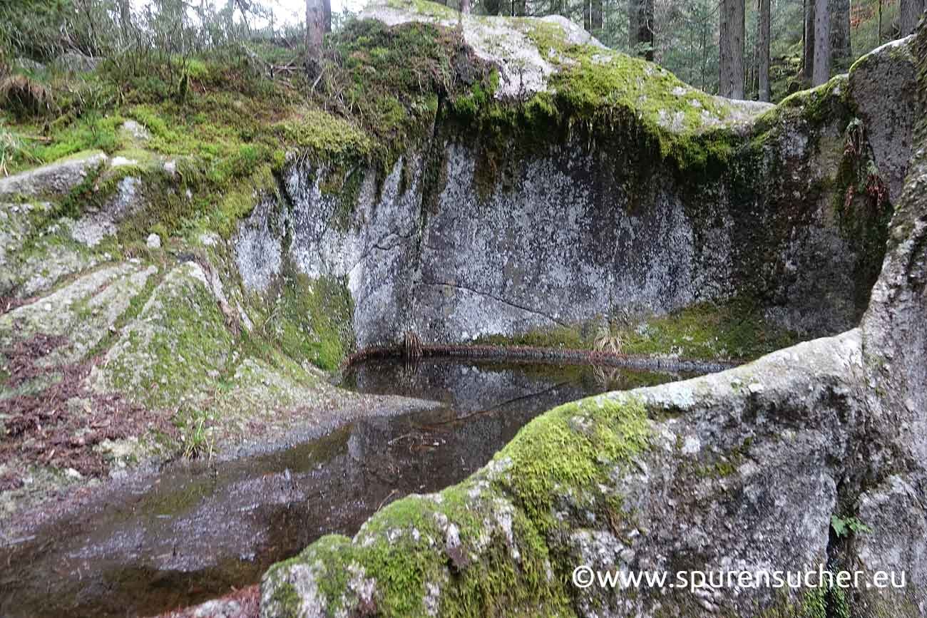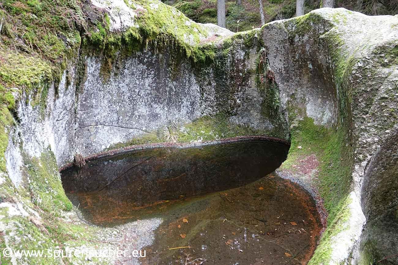 Das große Becken verfügt über zwei Mulden, die sorgfältig aus dem Felsen herausgearbeitet wurden.