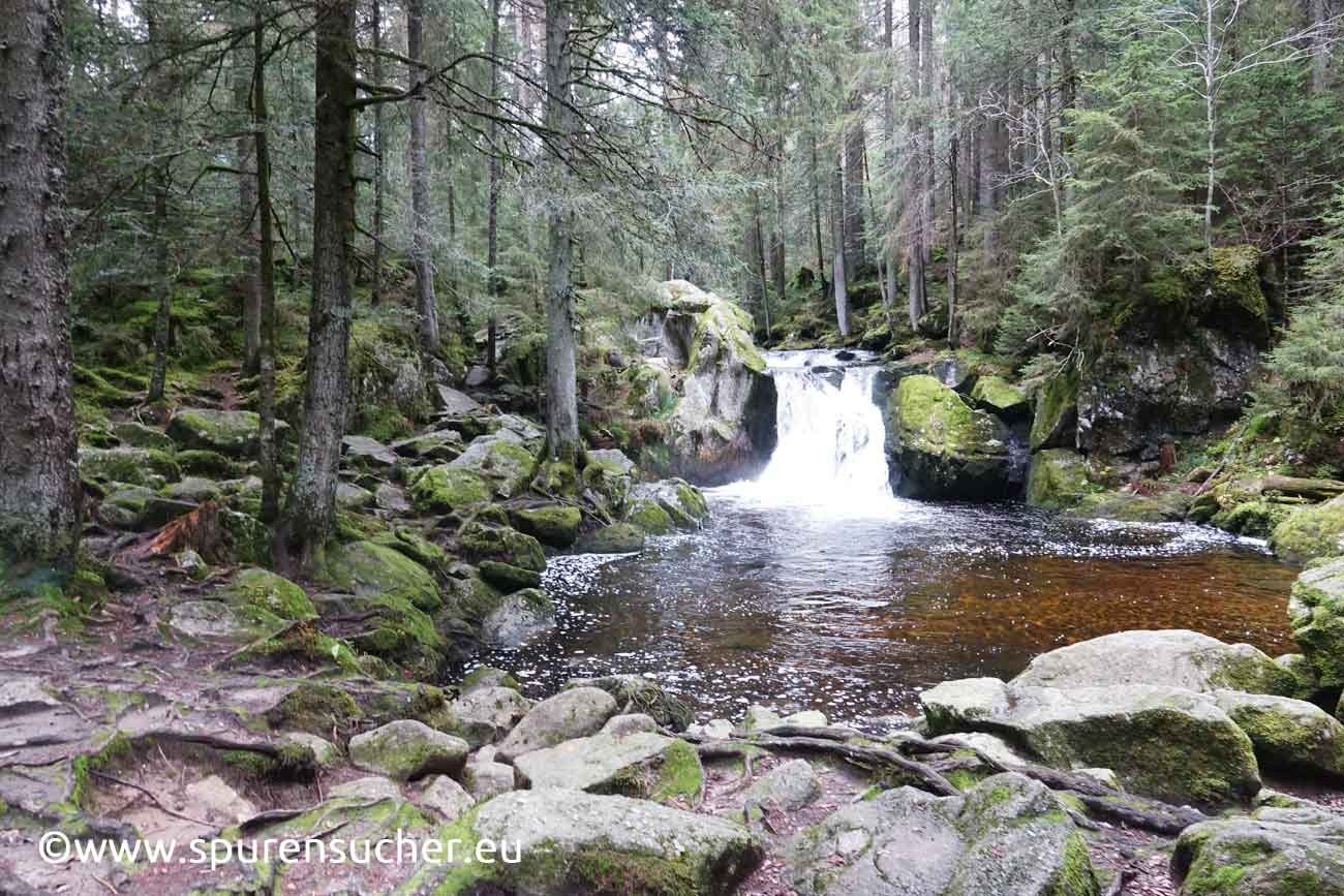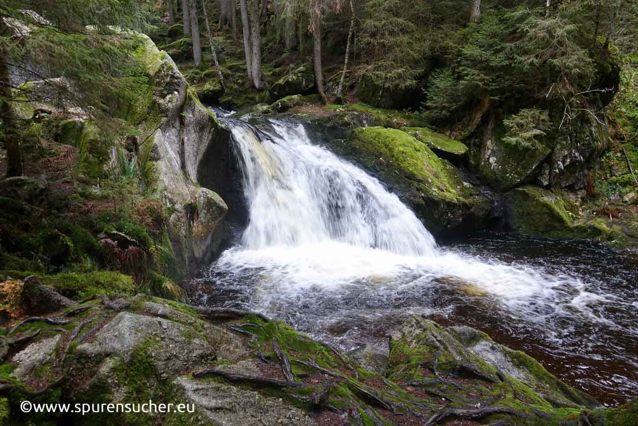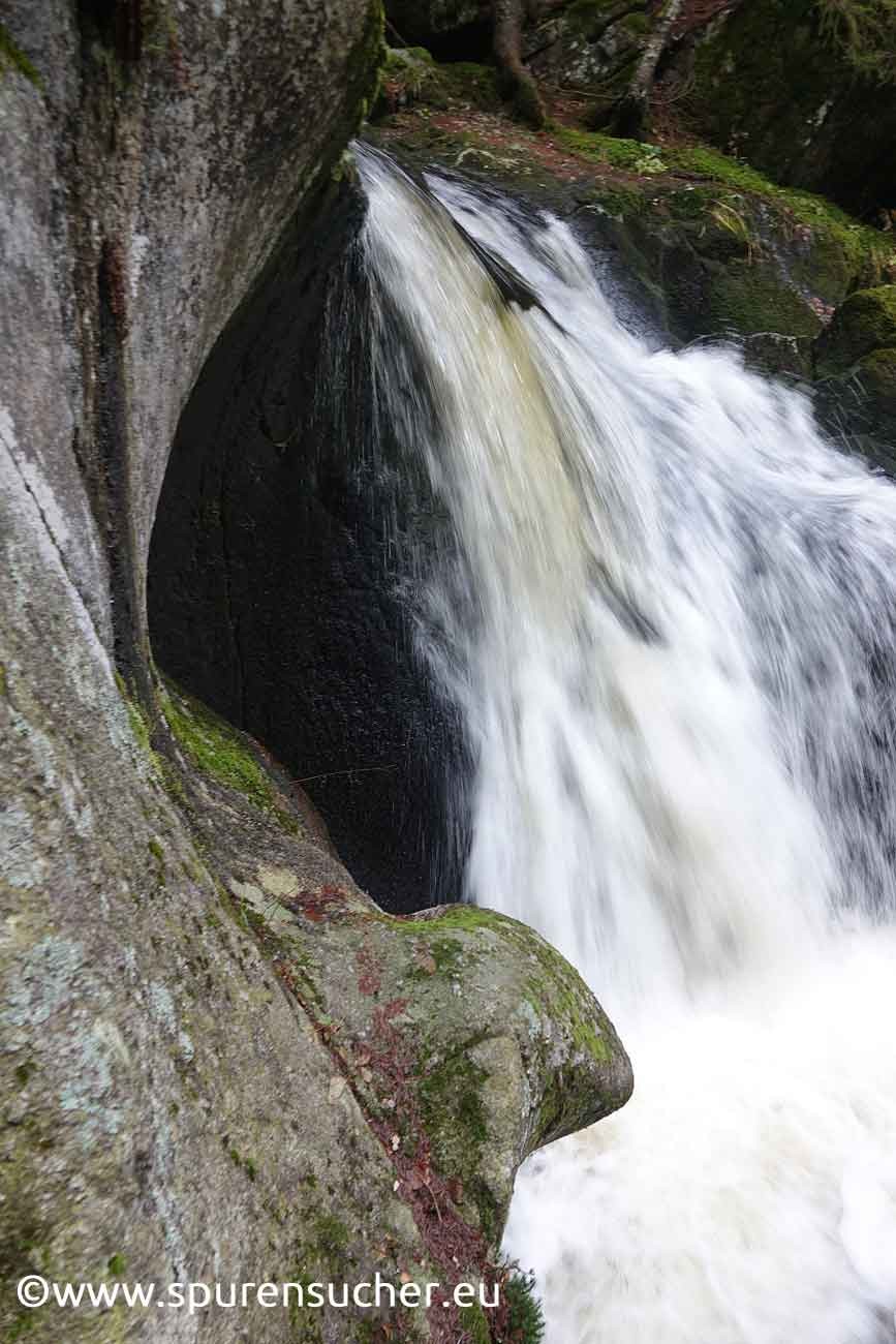 Ein überaus idyllischer Ort im Schwarzwald, dessen Atmosphäre eine sehr große Ruhe ausstrahlt. Inmitten des hohen Felsens links am Wasserfall befinden sich die beiden Becken.
