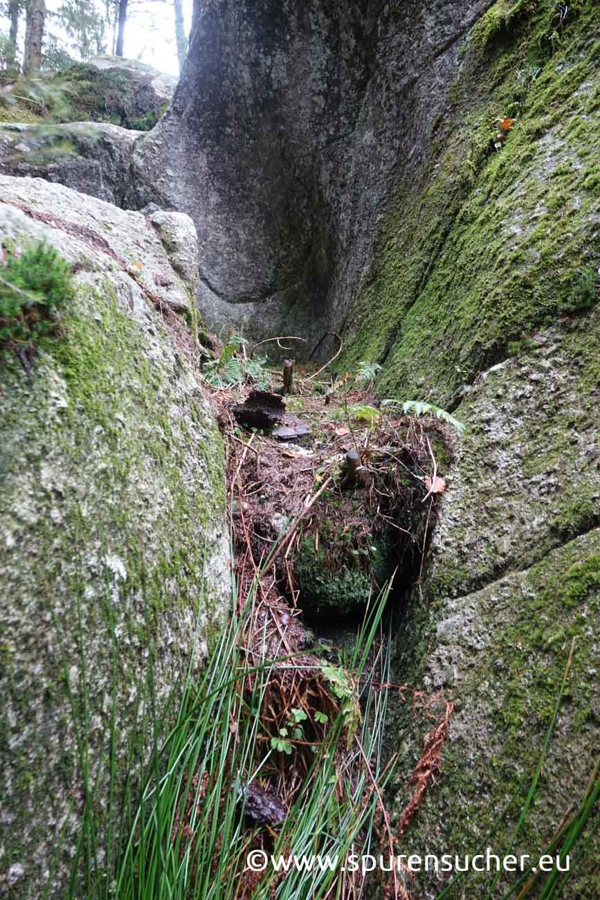Hier eine interessante dreieckige Einkerbung in einem der anliegenden Felsen