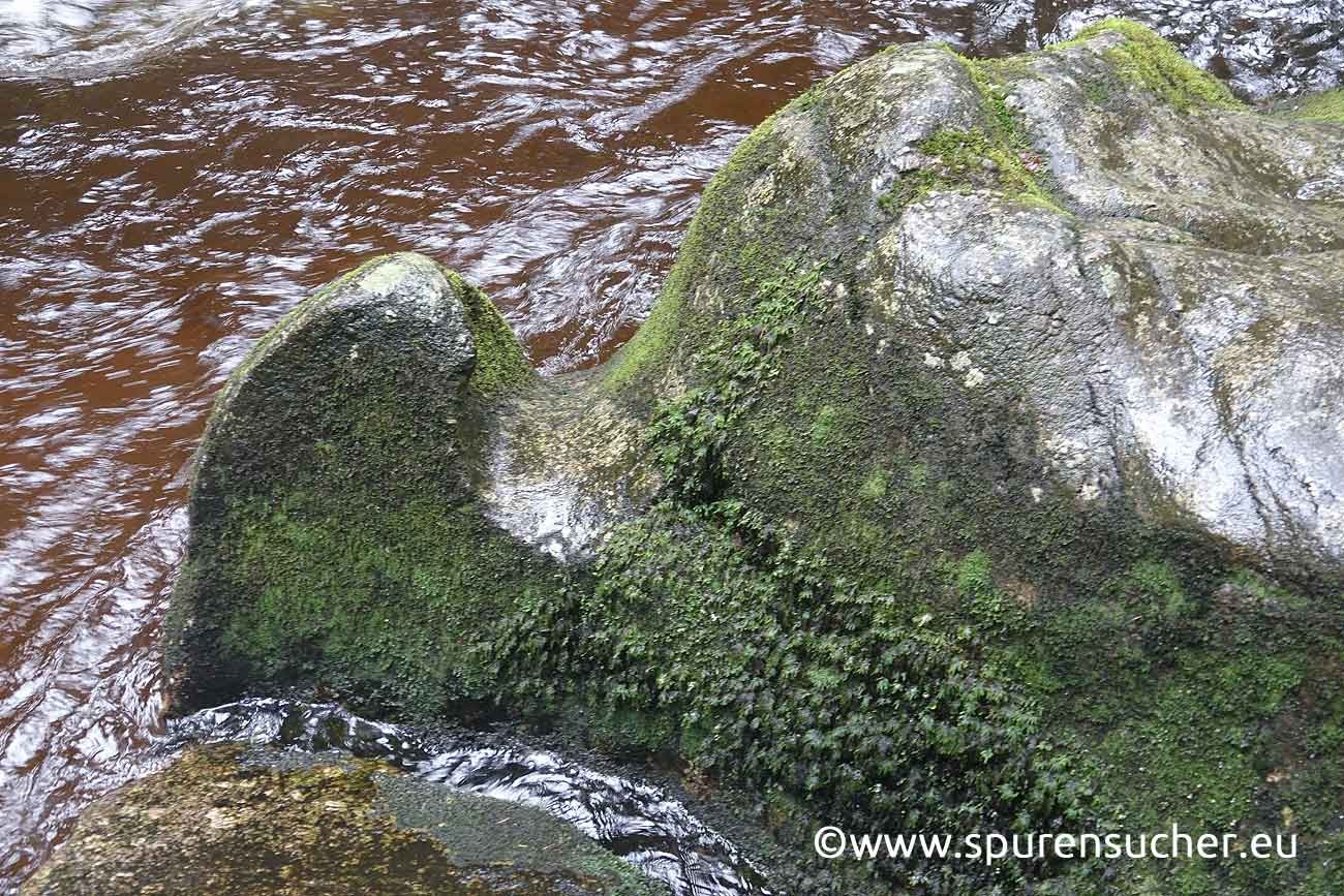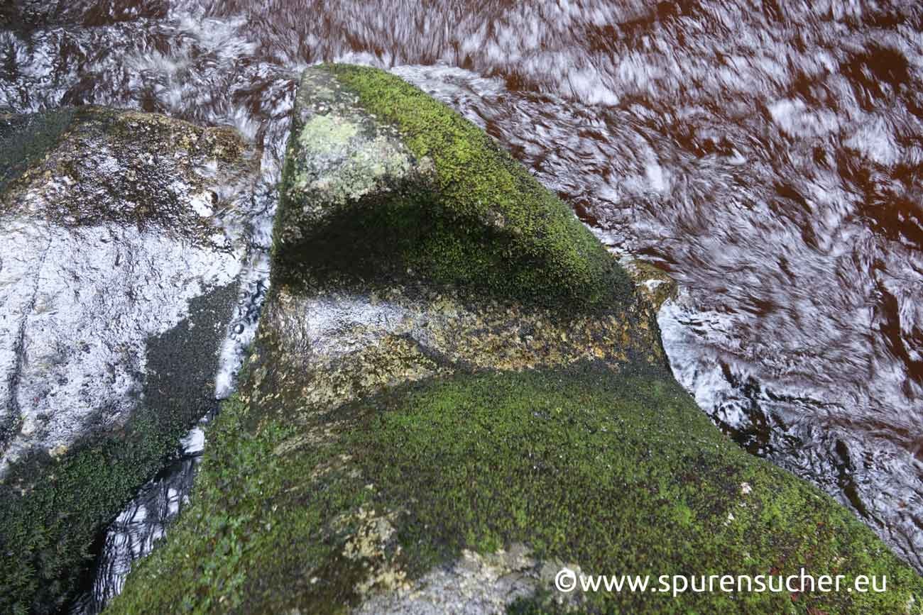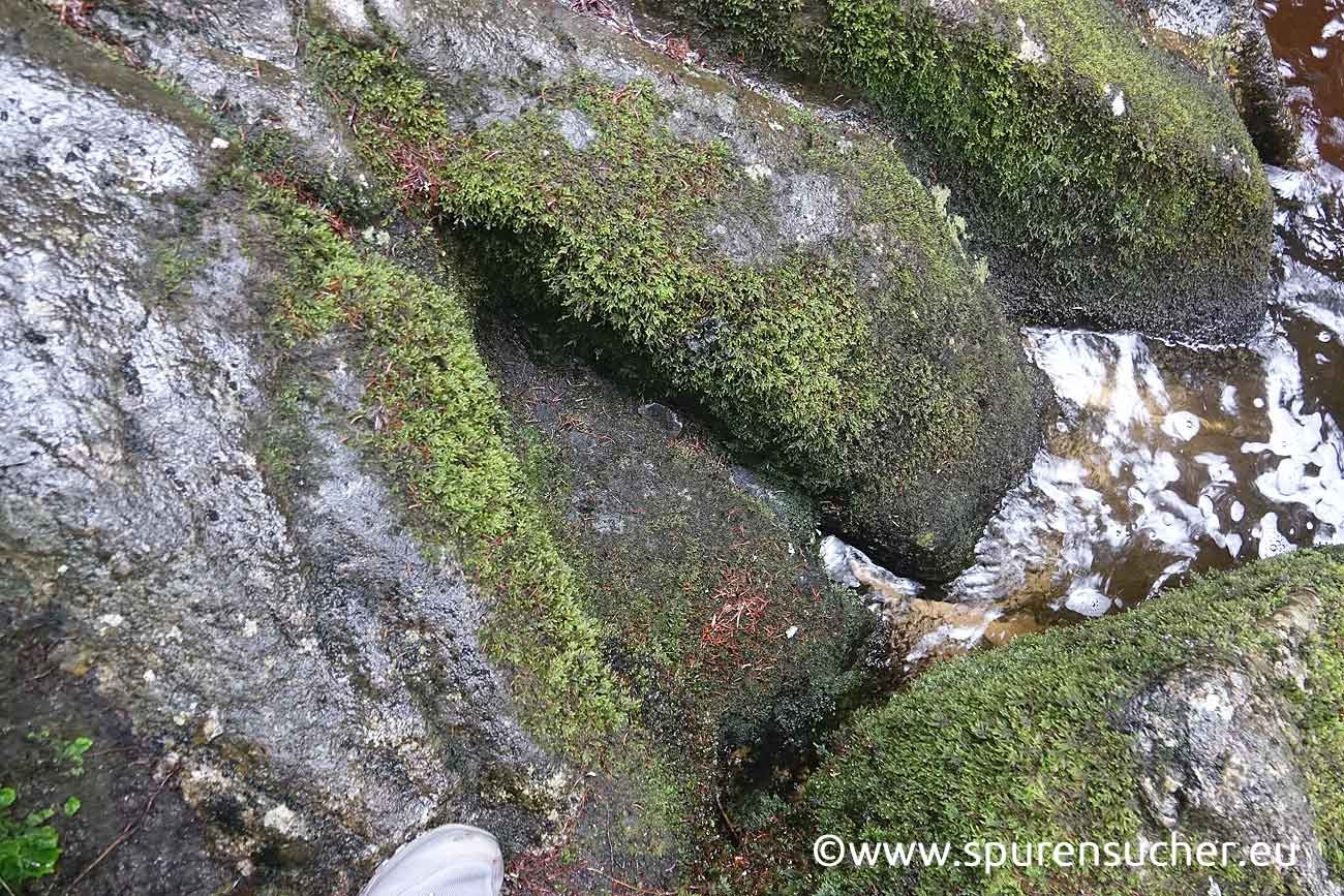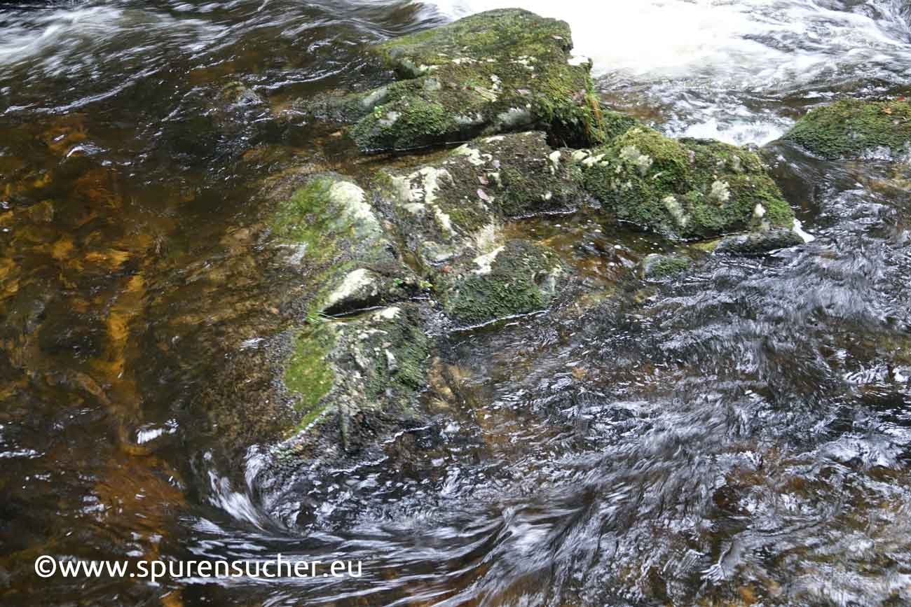 Weiterer Felsvorsprung im Bachverlauf: Dieser ist zweifellos auch das Ergebnis menschlicher Einflussnahme.