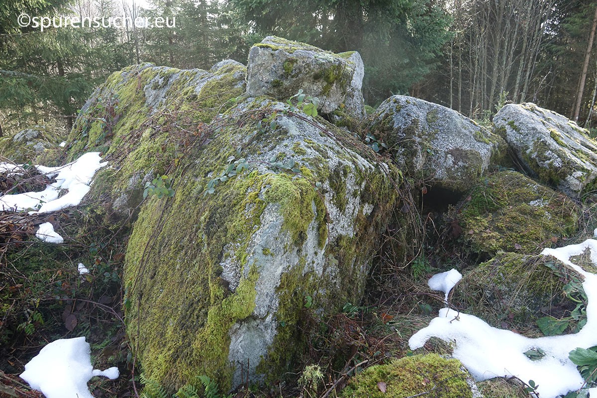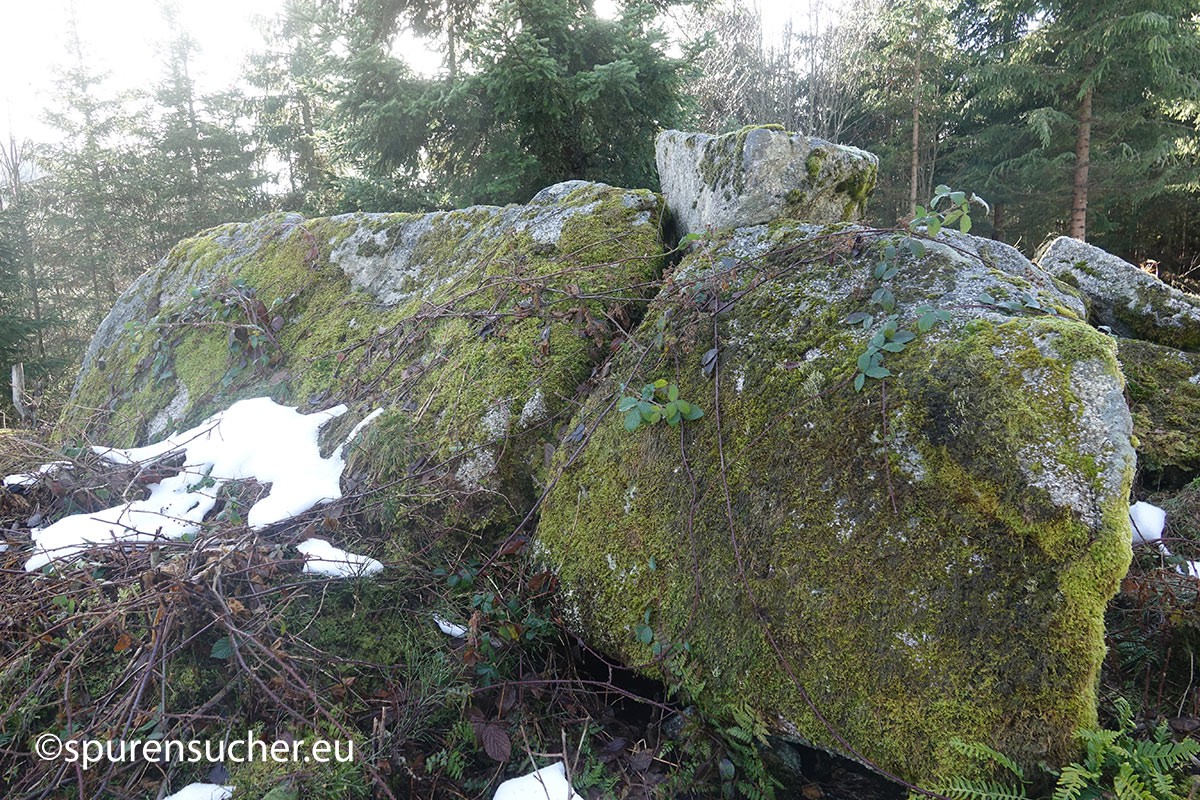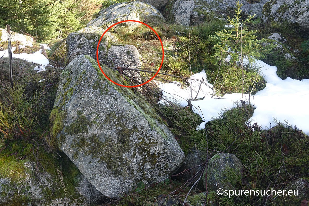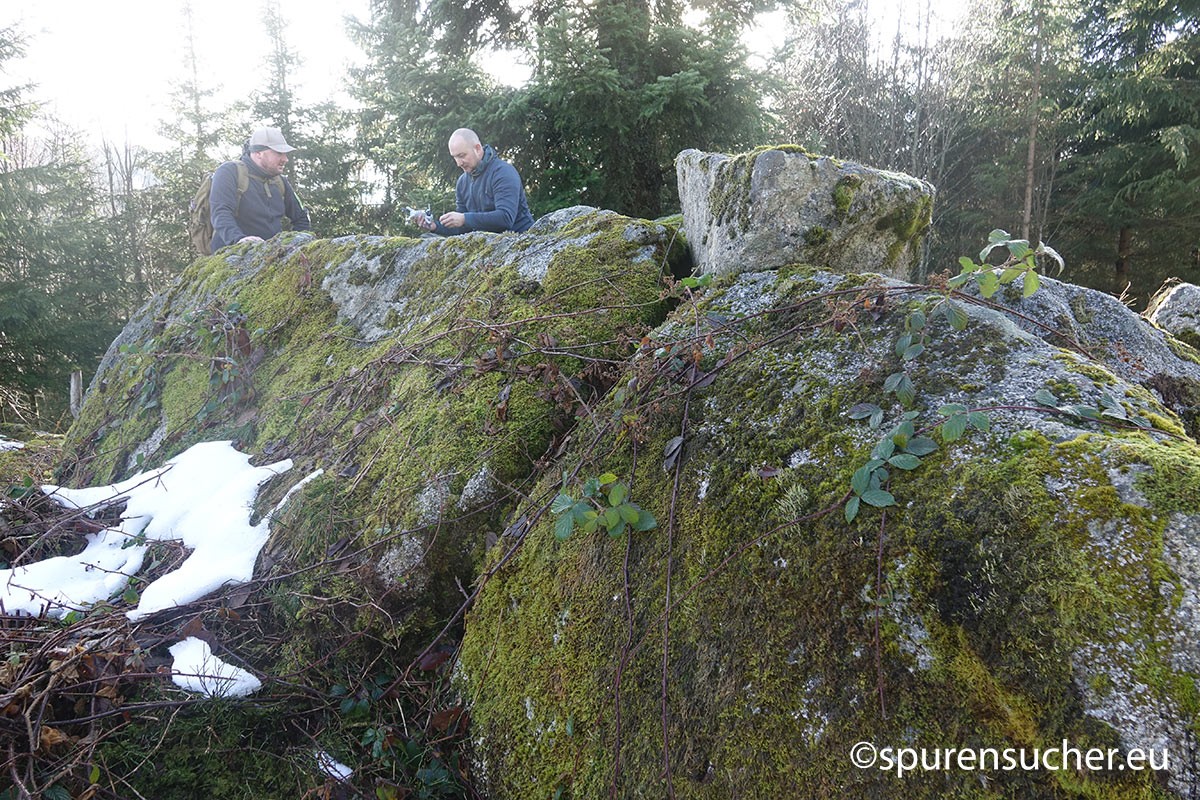 Was hat es damit auf sich? Die Möglichkeit bestünde nach näherem Hinsehen, dass manche dieser Steine als Ortostaten dienten - aufrechte Steinstelen, die in der Archäologie häufig in Megalithgräbern wie Dolmen verwendet wurden. Sie könnten die Wände oder Seiten einer dieser bekannten Strukturen gebildet haben. Und ja, einige der anderen Felsen könnten sogar als Deckplatten gedient haben, um den "Unterstand" vor Witterungseinflüssen zu schützen. Wir jedenfalls haben potentielle Auflageflächen an Stelen oder stelenähnlichen Felsen gefunden, die mich an Dolmenstützen in der Normandie erinnerten. Da es sich um mehrere Fälle handelte, drängt sich der bewusste menschliche Eingriff an diesen Stellen auf.