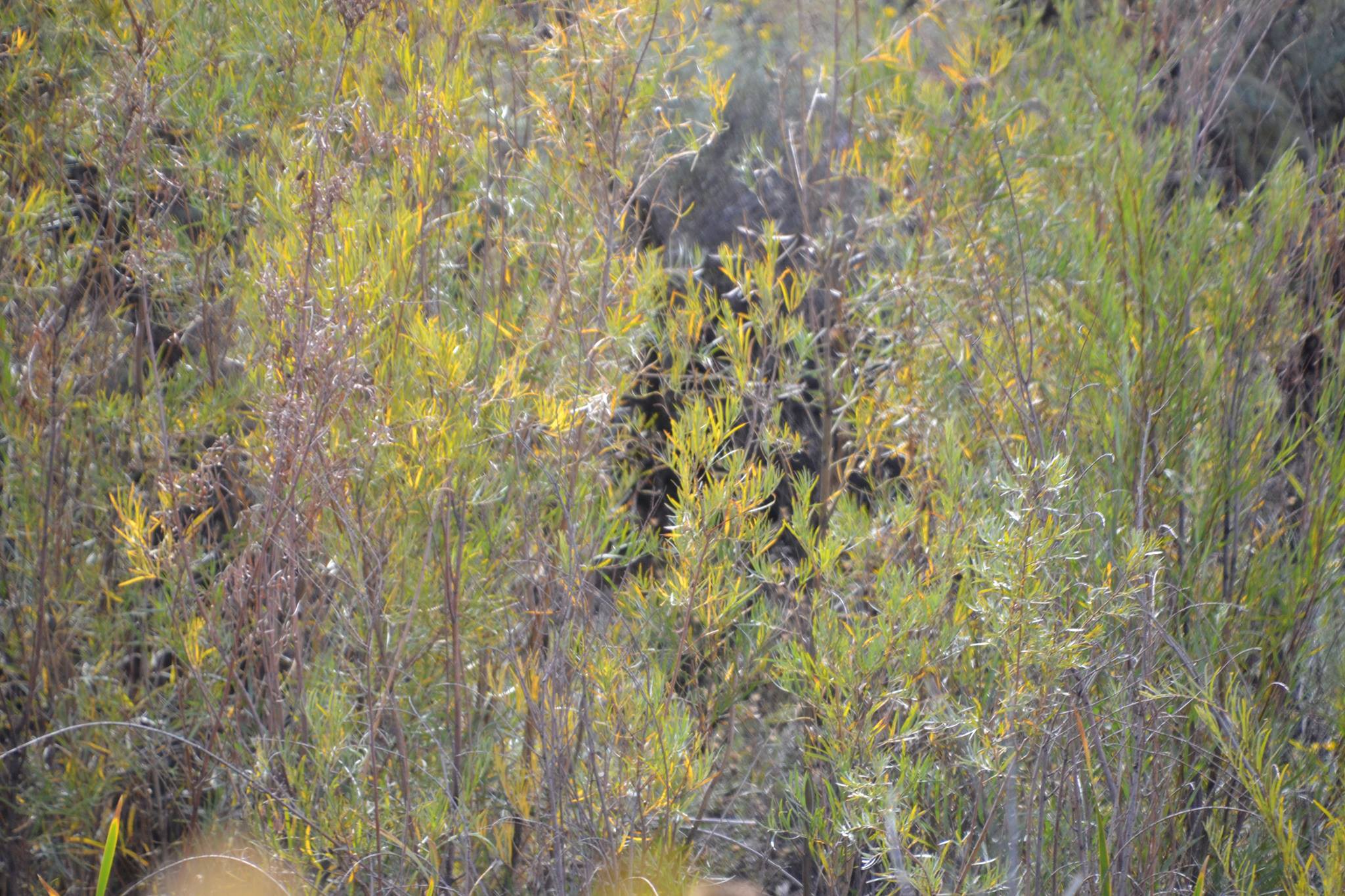 Die Details werden in den meisten Fällen bei der Aufnahme nicht direkt wahrgenommen, sondern später über Detailvergrößerungen herausgearbeitet, was mitunter dann auflösungstechnisch zu Unschärfen führt. Hier ein sich tarnendes Wesen im Unterholz (lt. Aussage von Denice)