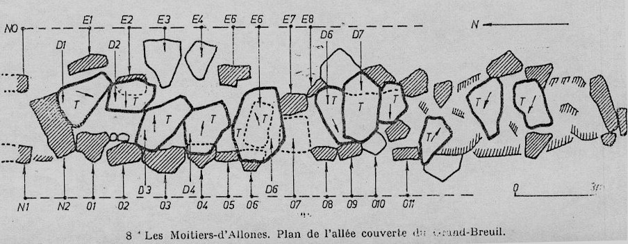 Auch normannische Wissenschaftler sind mit der Kategorisierung von Megalithbauten schnell bei der Hand, wie man am Dolmen du Grand Breuil in der Normandie auf Anhieb feststellen kann. Dieser Megalithbau, der sich in dolmenähnlicher Struktur über 20 Meter hinweg über einen Acker erstreckt, muss offiziell nun auch als Grabstätte herhalten. Da sich diese "Allee"-artige Konstruktion (die Franzosen nennen diese deshalb auch allée couverte – übersetzt gleichbedeutend mit bedeckter Allee) derart lang zieht, gehen die gleichen Wissenschaftler selbstverständlich von einem Massengrab aus, da man sich ja bei einer bestatteten Einzelperson oder einem Paar wohl Gedanken über dessen/deren Größe machen müsste.
