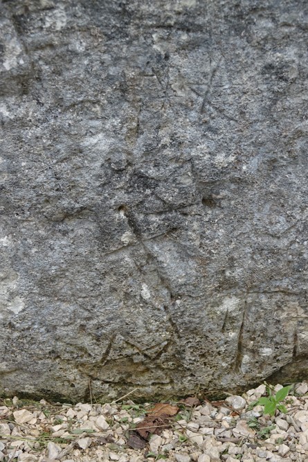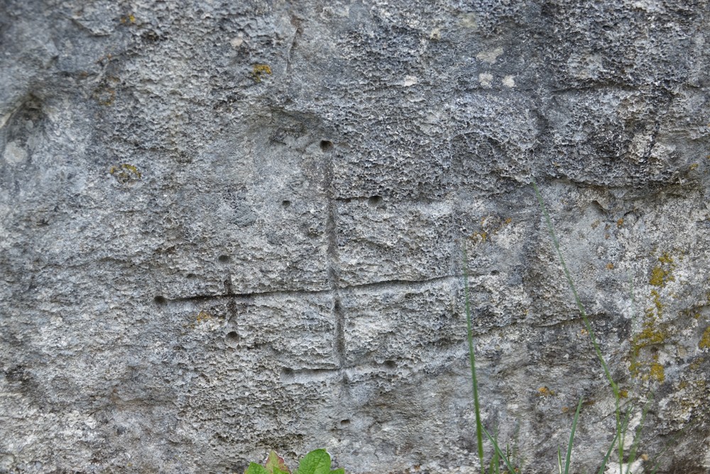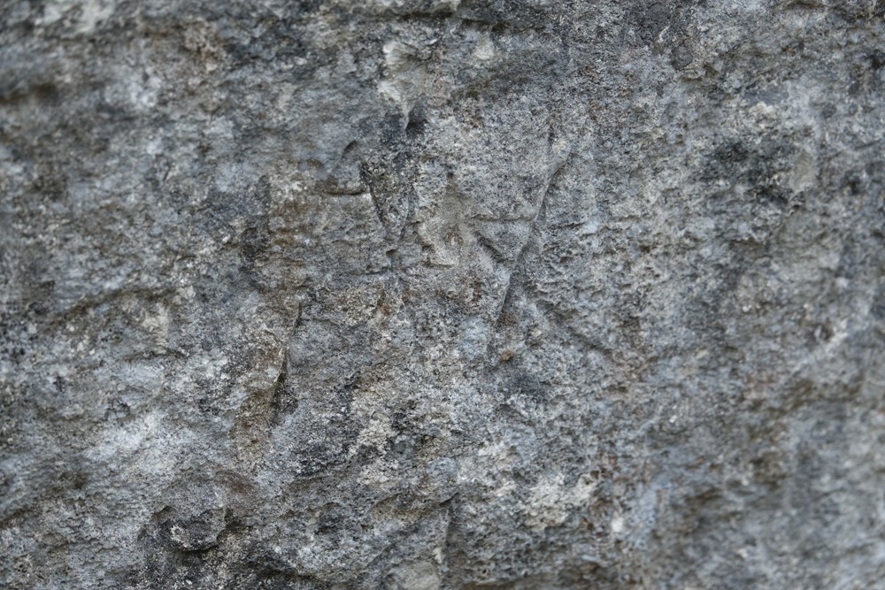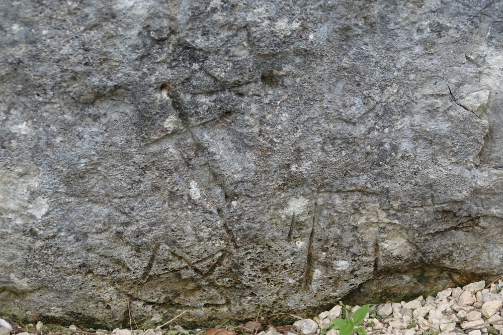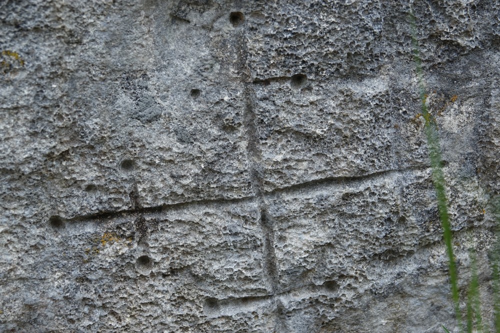 Ich musste allerdings selbst lange suchen, nachdem ich vorher einen Tip bekommen hatte. Ich glaube, ich habe gefühlte hundert Mal den erratischen Felsen umrundet, bis ich dann letztlich doch fündig wurde. Der Clou an der Sache: Die Gravuren befinden sich nicht auf Gesichts- sondern eher auf Schienbeinhöhe. Das erklärte am Ende auch, warum ich dafür so lange gebraucht hatte.